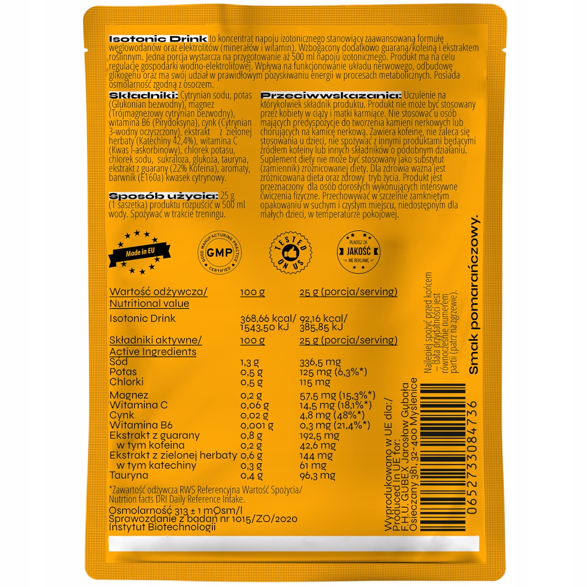Європейська комісія з охорони здоров’я та захисту споживачів представила вказівки щодо напоїв, які можна вважати ізотонічними, окрім відповідної калорійності, цукру з високим глікемічним індексом та вмістом натрію, це також відповідна осмоляльність, сумісна з рідинами нашого організму. Це особливо важливо, тому що організм, втрачаючи воду в результаті фізичної активності, спочатку зменшує об’єм позаклітинної рідини, що підвищує осмотичний тиск в організмі. Різниця в концентрації електролітів змушує воду проходити крізь клітинні мембрани, поки осмотичний тиск не вирівняється, це те, що ми називаємо ізотонією. Продукція бренду ecomax® була спеціально перевірена, щоб забезпечити спортсменів ідеальною сумішшю, яка швидко заповнить прогалини та дозволить нам продовжувати зусилля.