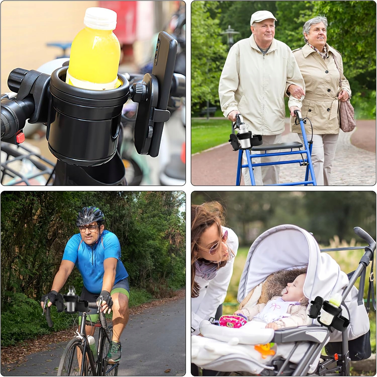 - 【Багатофункціональний тримач для пляшок】Універсальний тримач для напоїв підходить для більшості колясок, велосипедів, електричних колясок, інвалідних візків, колясок, колясок, коляски, самокати та газонокосарки. Тримач для напоїв також підходить для пляшок різного розміру, таких як пляшки з водою, чашки для кави, дитячі пляшечки тощо. Під час шопінгу чи подорожі напої завжди будуть під рукою.