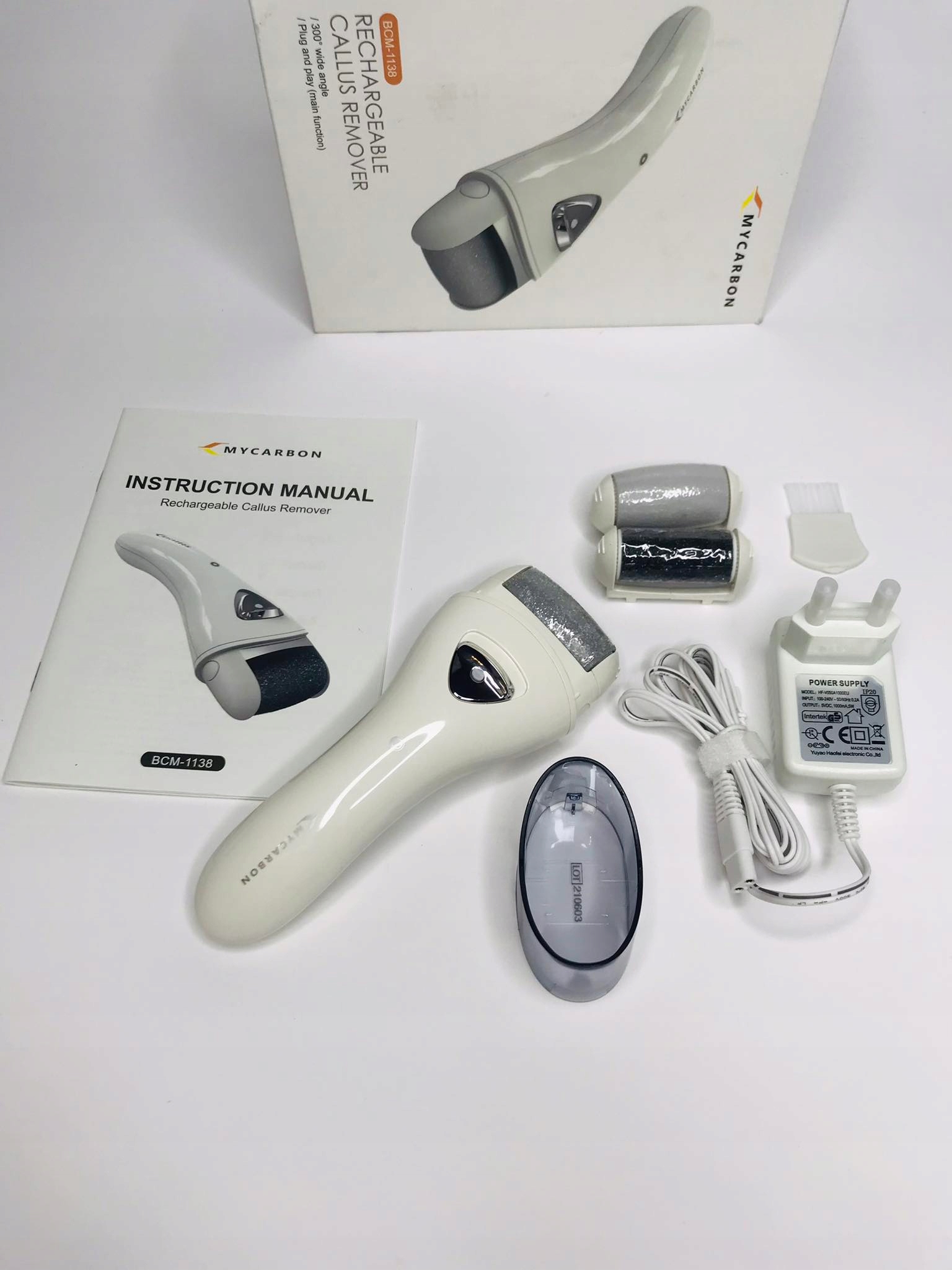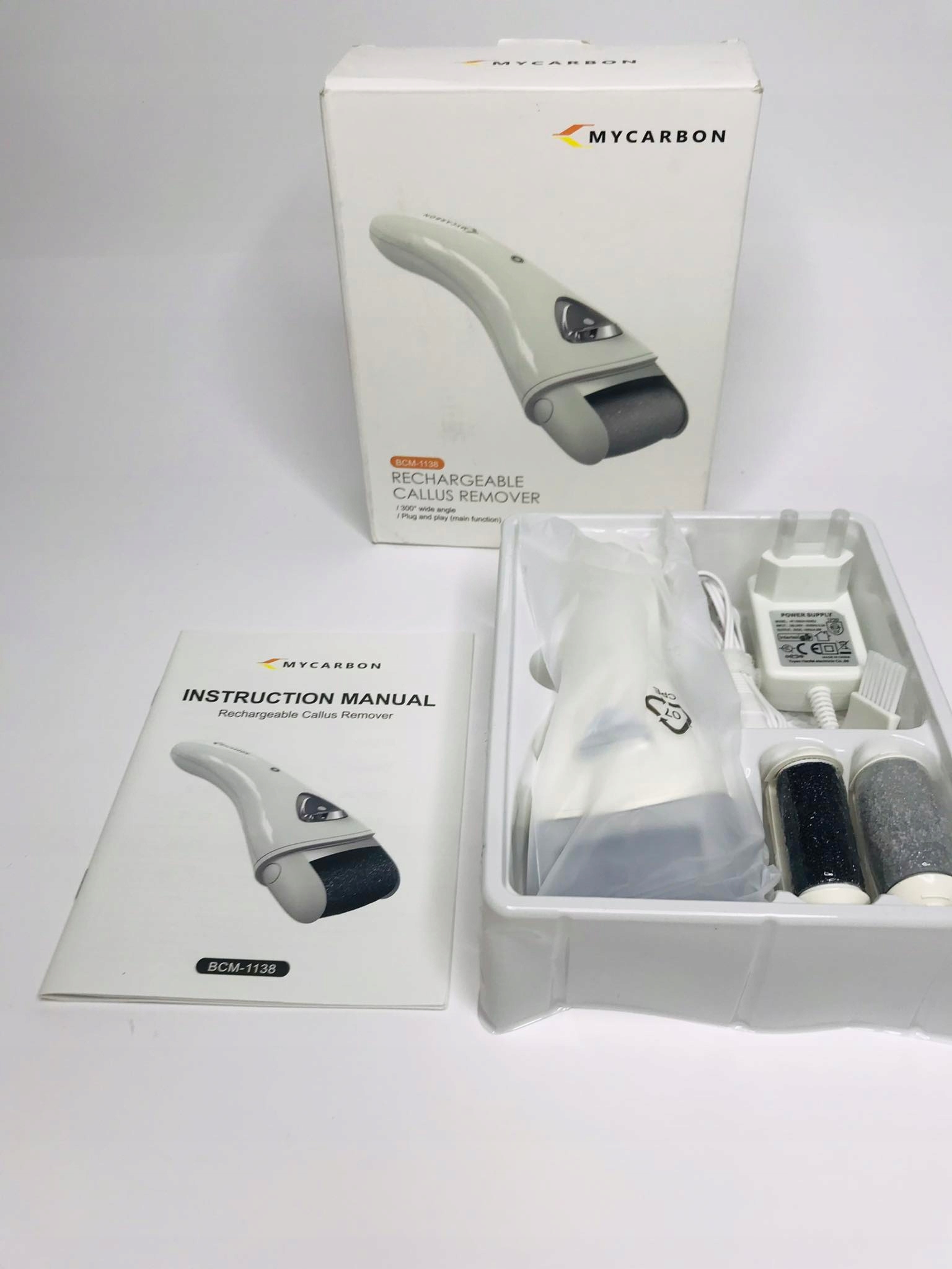 Електрична пилка для ніг MYCARBON, бездротова, акумуляторна з підсвічуванням; 2 швидкості та 3 ролики для догляду за стопами.
