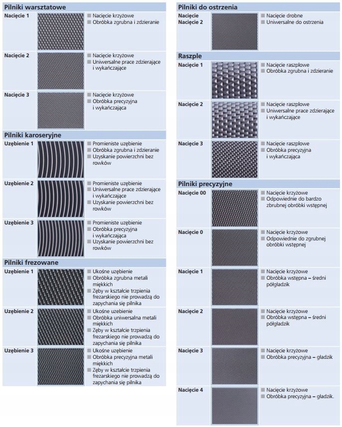 Загальні відомості: ідеальна мікроструктура сталі є умовою рівномірної твердості напилка. Тип і кут різу залежать від застосування: різ 1 для чорнової обробки, різ 2 для напівчистової/універсальної обробки та різ 3 для чистової обробки. Ідеальна геометрія зуба для будь-якого застосування. Довжина напилка вимірюється без хвостовика від кінчика до основи хвостовика.
