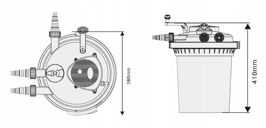 ✅ вода з фільтра може витікати і підніматися на висоту до 3 м (залежно від використовуваного насоса), напр. до каскаду, потік