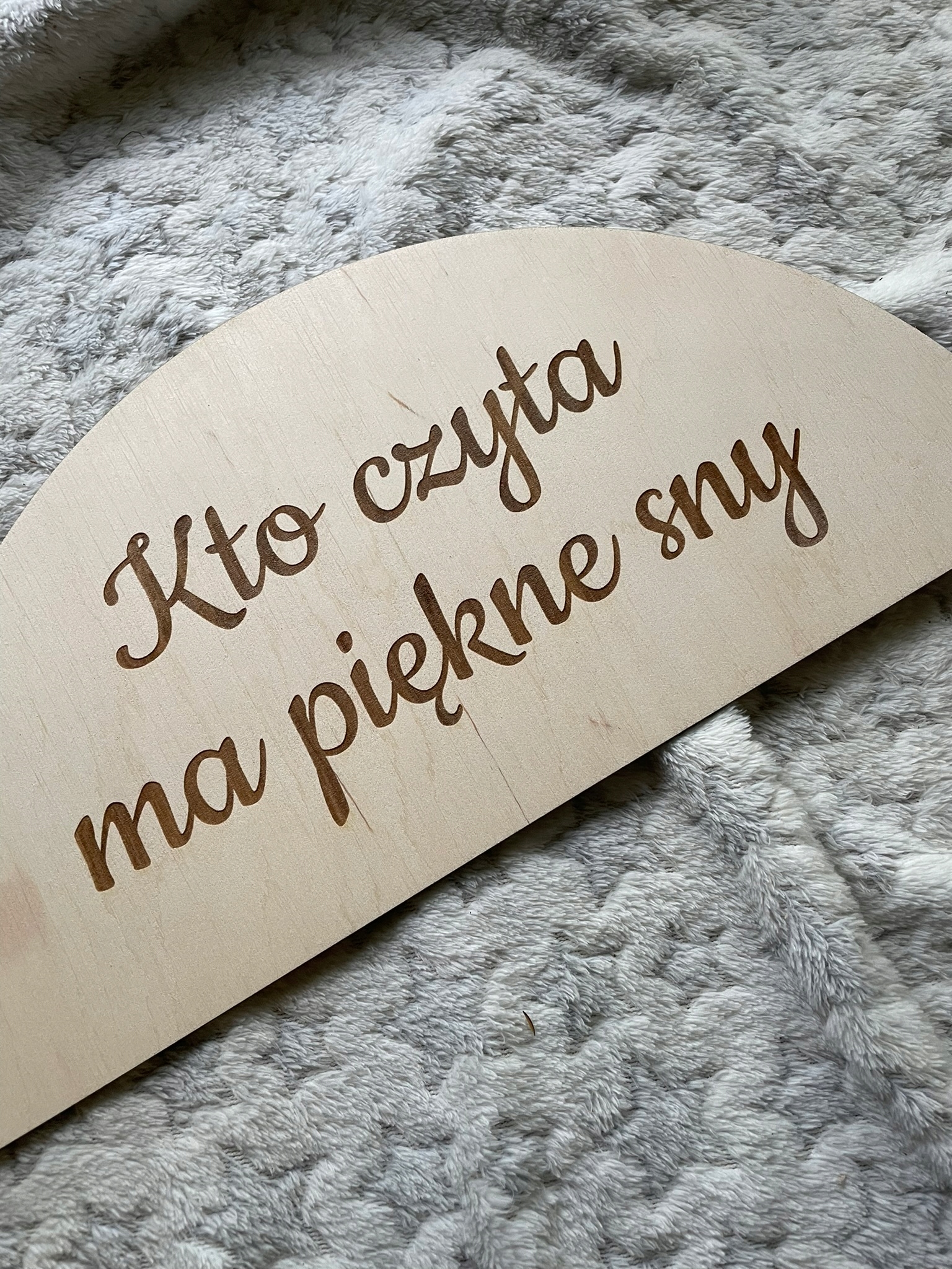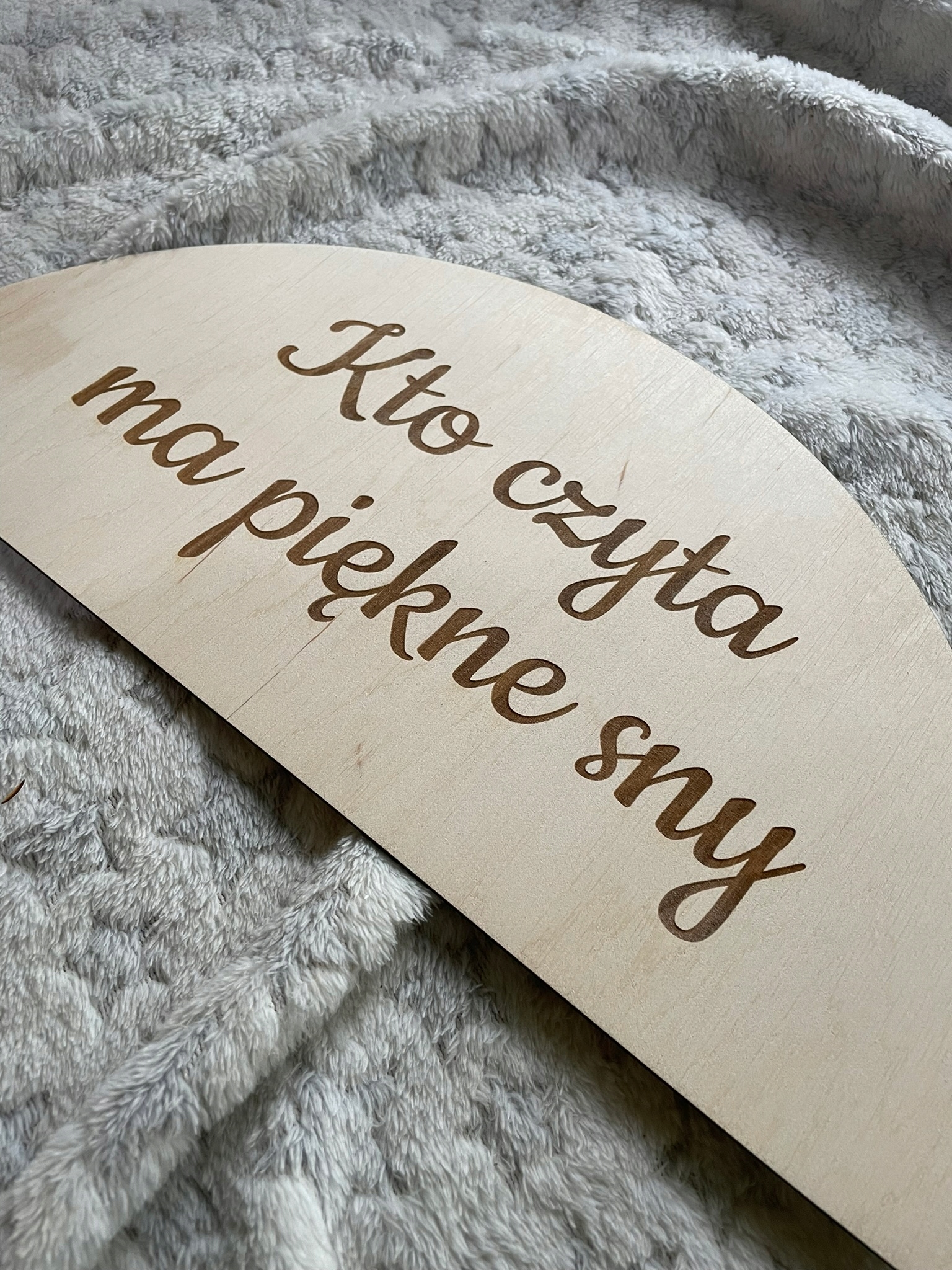 Дерев’яний напівкруглий декор із гарною цитатою «Хто читає книги, той має прекрасні сни…», який можна приклеїти на стіну, зробить кімнату вашої дитини ще кращою затишно та чарівно! Книги вашої дитини нарешті знайдуть місце своєї мрії. Виберіть один із 10 дизайнів написів, які ідеально пасуватимуть до вашої кімнати.