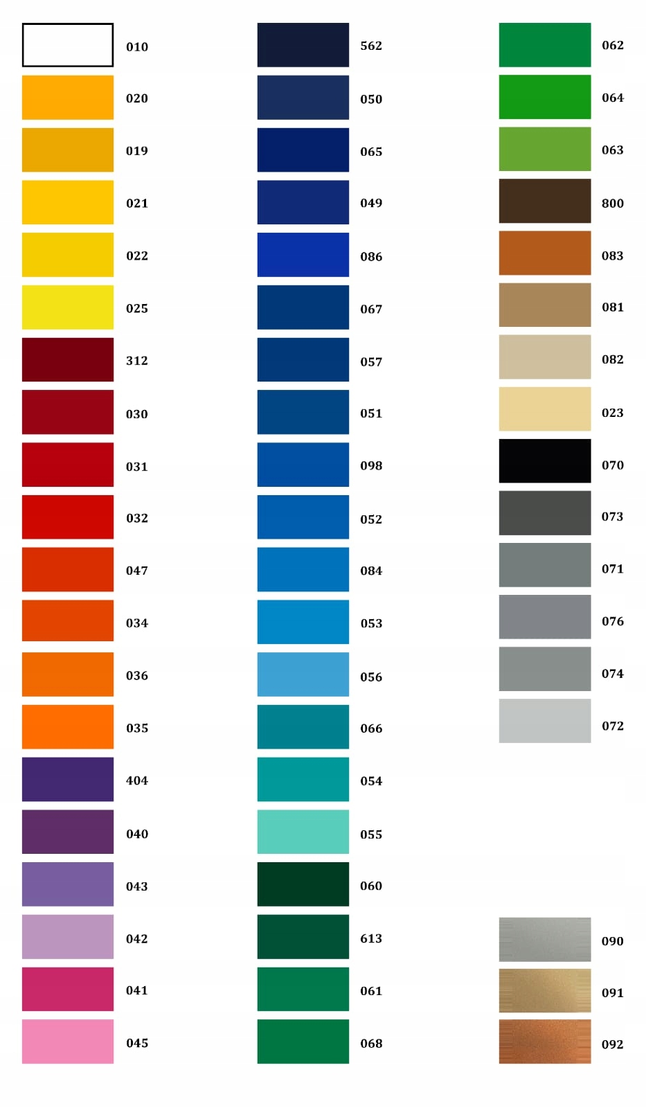 4 031 - червоний, 032 - світло -червоний, 047 - помаранчевий -red, 034 - помаранчевий, 036 - світло -помаранчевий, 404 - фіолетовий фіолетовий, 040 - темний фіолетовий, 043 - L, 4 -х, фіолетовий, 043 - l - lilac purple, 041 - pink, 045 562 - navy sea, 050 - navy blue, 065 - Cobalt blue, 049 - royal grenade, 086 - blue blue, 067 - синій, 057 051 - темно -синій, 098 - темний Azure Blue, 052 - Azure Blue, 084 - Синій, 053 - світло -синій, 056 - PASTEL - turquoise, 055 - mint, 060 - dark green, 613 - forest green, 061 - green, 068 - grass green, 062 064 - yellow -green, 063 - Pastel Green, 800 - Бронза, 083 - гайка коричневого, 081 - світло -коричневий, 082 - beige, 023 070 - чорний, 073 - темний сірий, 071 4