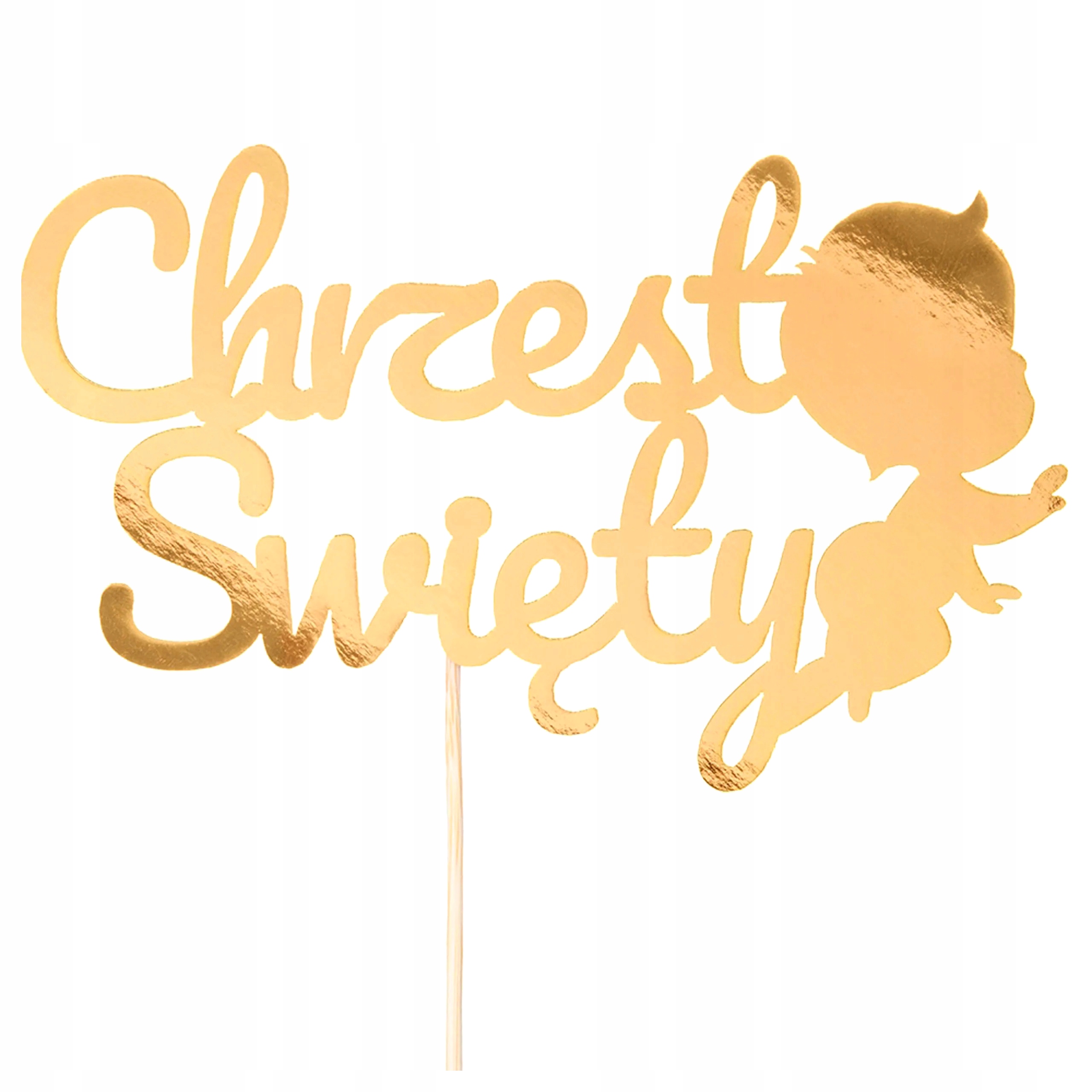 Святе хрещення - це унікальне святкування, яке вимагає елегантного обов'язкового. Топпер у кольорі дзеркального золота з мотивом дитини та написом "Святе хрещення" - це ідеальна прикраса торта, що додає шарму та делікатесу.