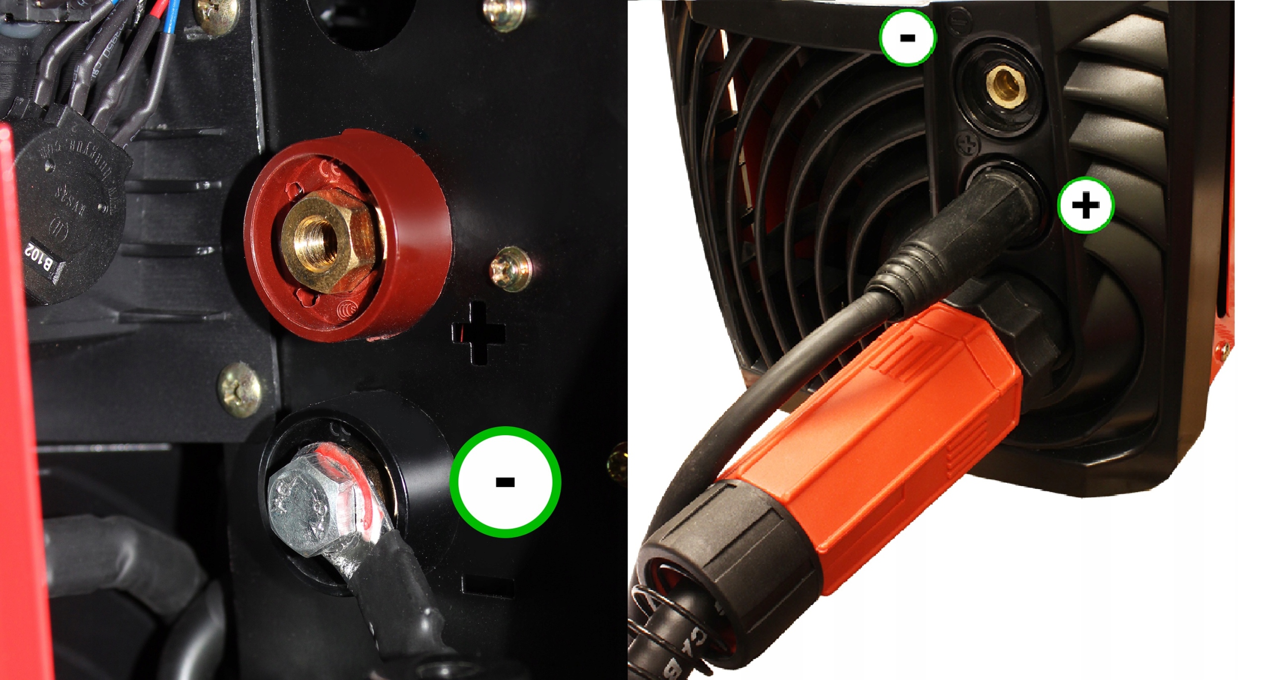 Завдяки кабелю перемикання полярності можна зварювати без захисного газу за допомогою самоекранованого дроту FCAW.