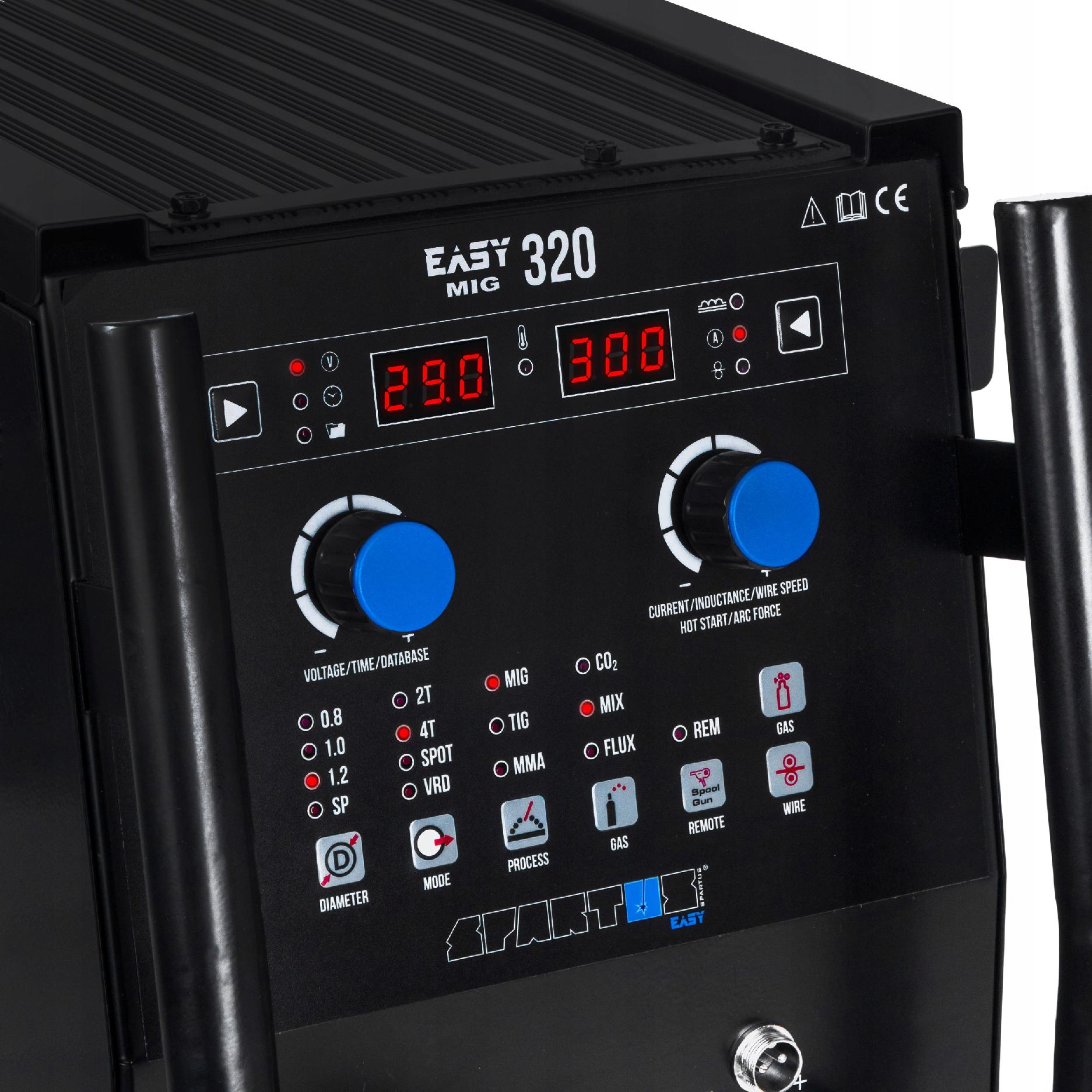 Зварювальний апарат SPARTUS EASYMIG 320 — це зварювальний апарат 3-в-1, який можна використовувати для зварювання методами MIG/MAG, MMA (електрод з покриттям) і TIG DC (з сенсорним запалюванням LIFT). Апарат дозволяє зварювати з максимальним струмом 300А, що забезпечує відмінну якість зварювання.