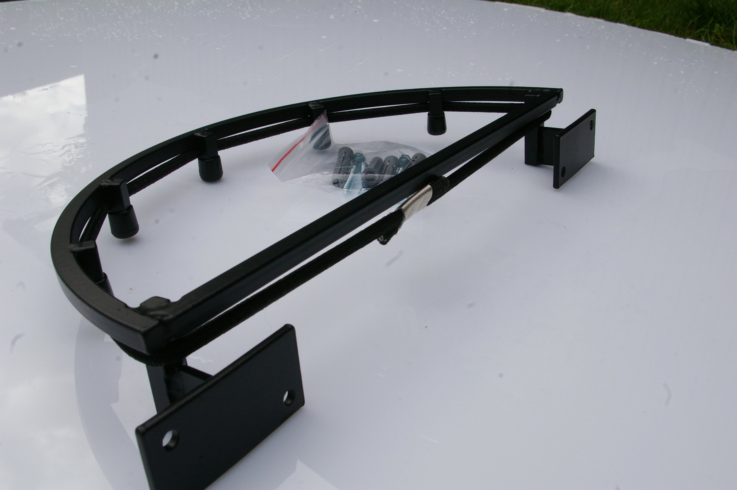 У відправленні ви отримуєте обідок, розширювач, набір шурупів, шайб і дюбелів, необхідних для кріплення обода до стіни.