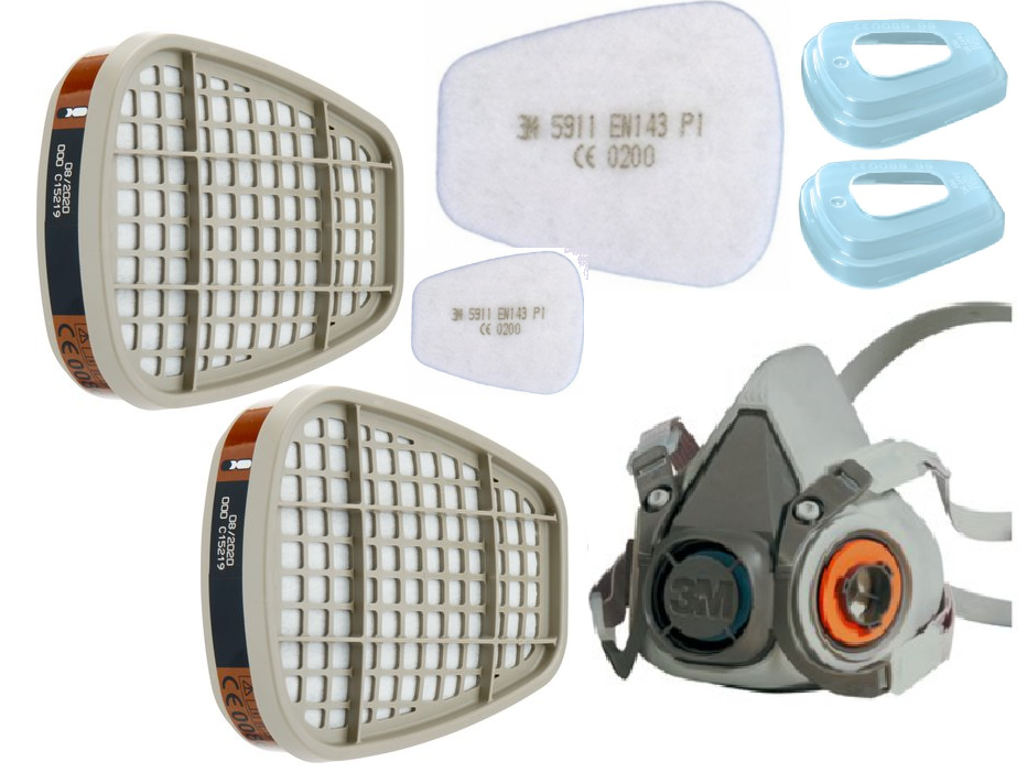 * НАПІВМАСКА 6200(розмір M, тобто середній) 2x A1 6051 поглинач + 2x 5911 ФІЛЬТР + 2x 501 КРИШКА