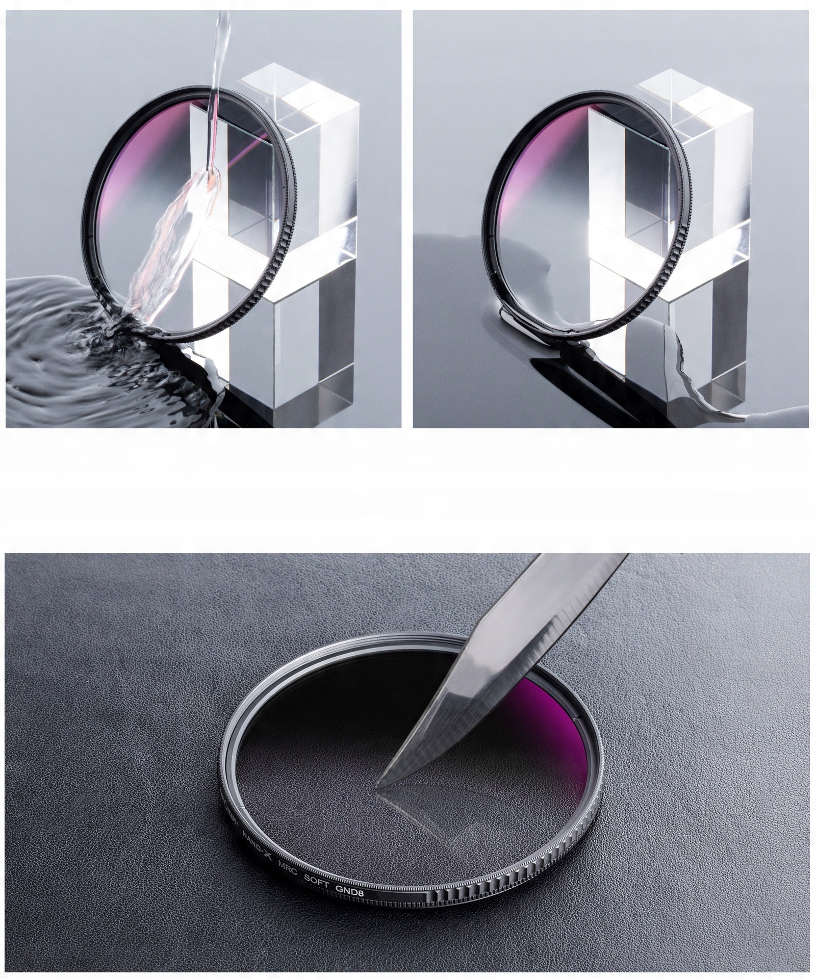 K&F CONCEPT підготував чудовий напівсірий фільтр, виготовлений з оптичного скла, з плавним і м'яким переходом від нейтрального сірого кольору щільністю ND8 до прозорості. p>