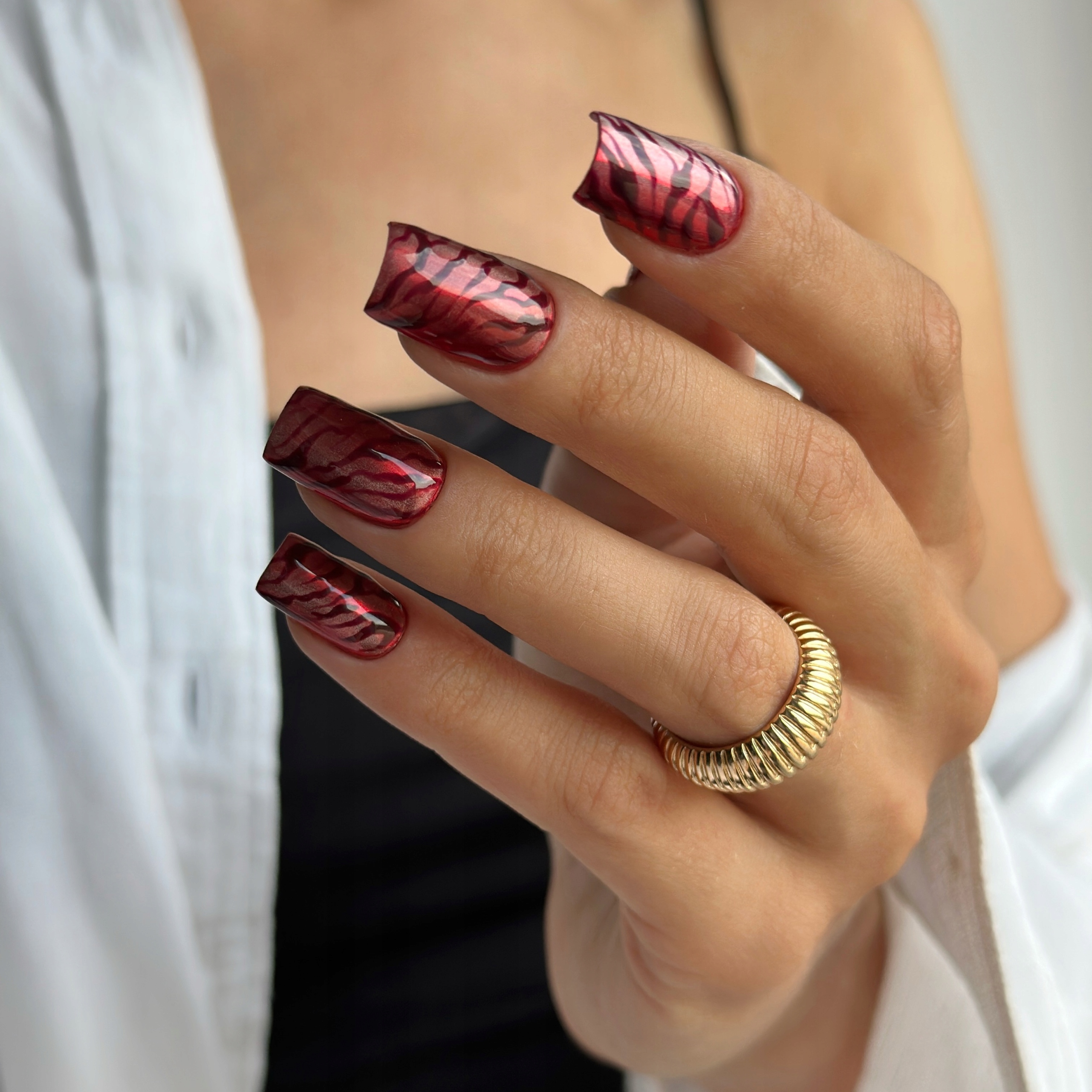 глибокий, виразний відтінок Бургундії , який виглядає як переміщено прямо з знакових кадрів 90 -х. - Елегантний, із ностальгією. Тип: кольоровий лак