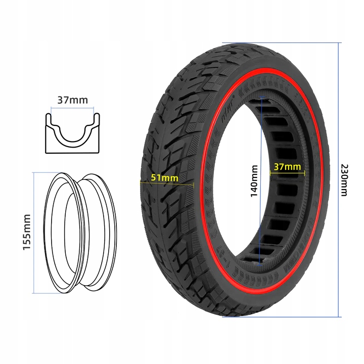 ✔️ Безкамерна напівтверда шина Ulip була спеціально розроблена для самокатів Xiaomi Mi Electric Scooter. Завдяки внутрішній структурі порожніх камер, шина поглинає їзду по нерівностях набагато краще, ніж інші шини цього типу. Чорна шина з червоною окантовкою додасть вашому скутеру оригінальний вигляд.