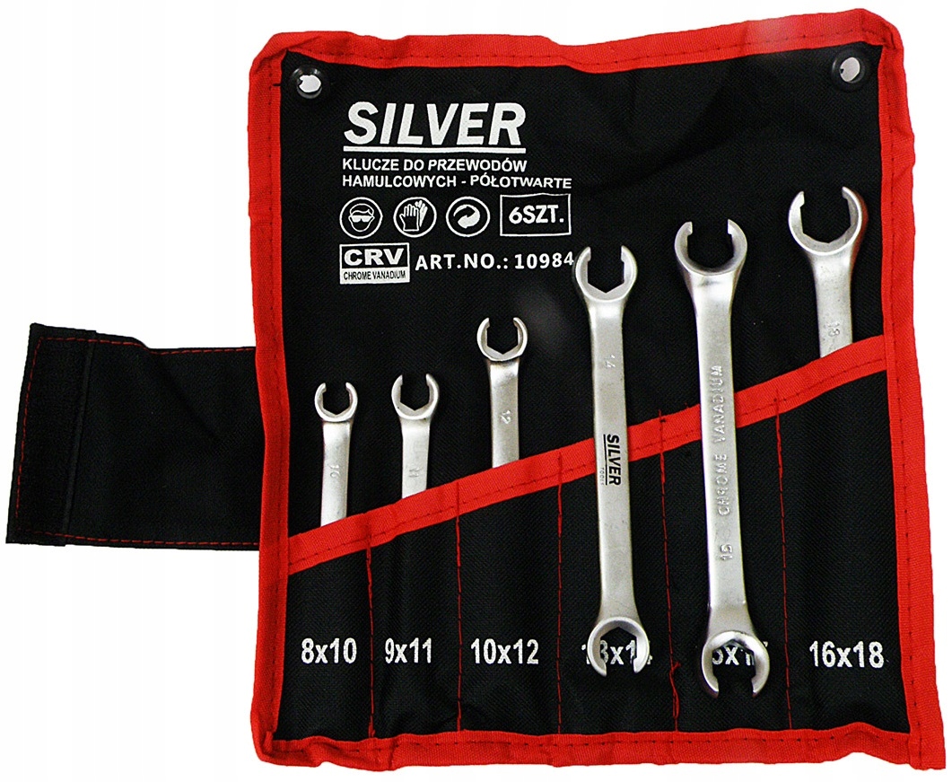 - Набір із 6 напіввідкритих ключів 8-18 мм для гальмівних магістралей
