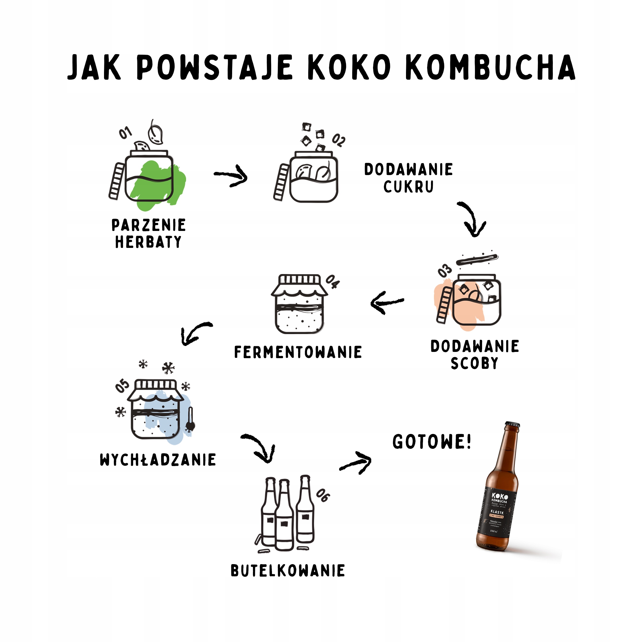 Koko Kombucha - справжня комбуча без підробки. Немає додавання ароматів, оцту, консервантів або фруктової м’якоті. Важливим є не пастеризований або слабкий вуглекислий газ. Це все робить його смак настільки гарним, що ми не можемо перестати тягнутись до іншої пляшки :)