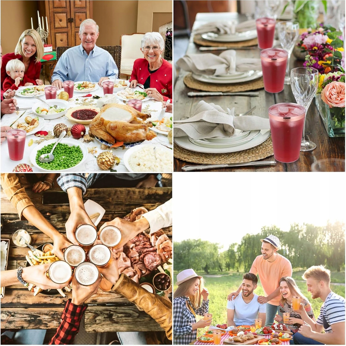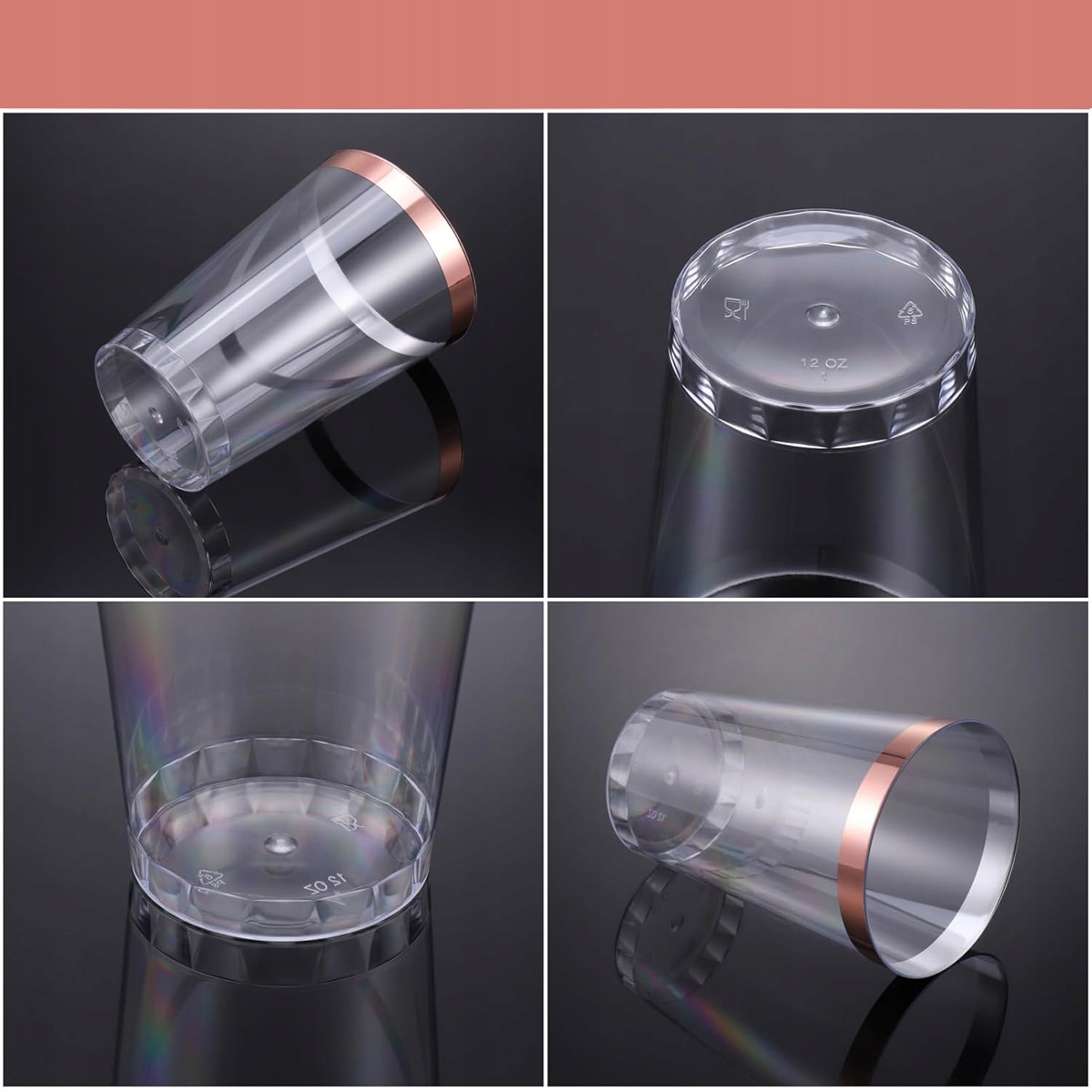✨ пластикові чашки 60 пластиків, пластикові чашки 360 мл / 12 унцій, без BPA, чашки для багаторазового використання, винні келихи, пити чашки з рожевим золотим краєм для коктейлів, шампанського, пива, напоїв та десертів