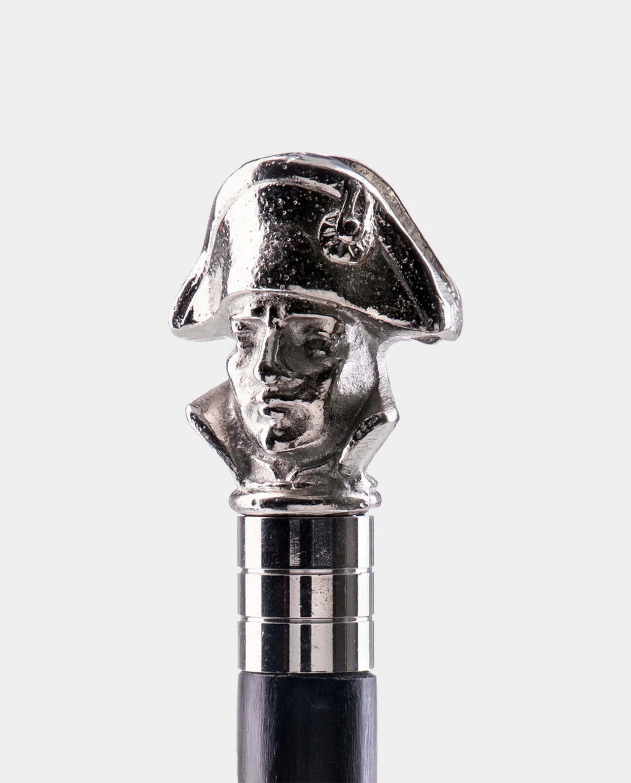 пташеня для ходьби з ручкою у вигляді скульптури бюста Наполеона Бонапарта. Ця прекрасна та оригінальна пташеня виготовлена з високоякісних матеріалів. Ядро пташеня виготовлена з сильної букової деревини, лакована в елегантному чорному кольорі, закінченій гумовою ногою. Ручка, у формі бюста Наполеона, виготовленого з нікельського металу.