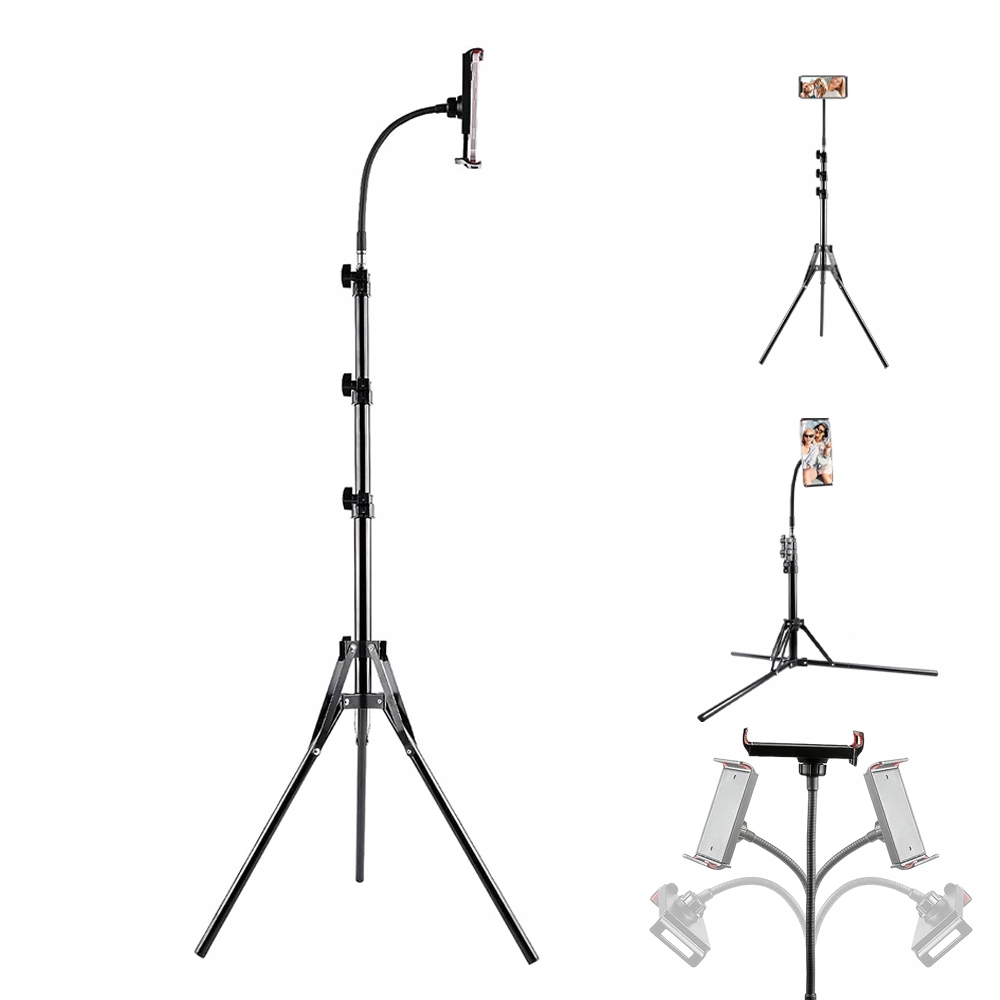 Штатив смартфона можна регулювати в діапазоні 72- 170 см. Регульований по висоті телефонний штатив для всіх ваших кінозаписів - наживо, відео, у дорозі. Гнучку лебедину шию можна регулювати на 360 градусів, щоб знімати з будь-якого кута.