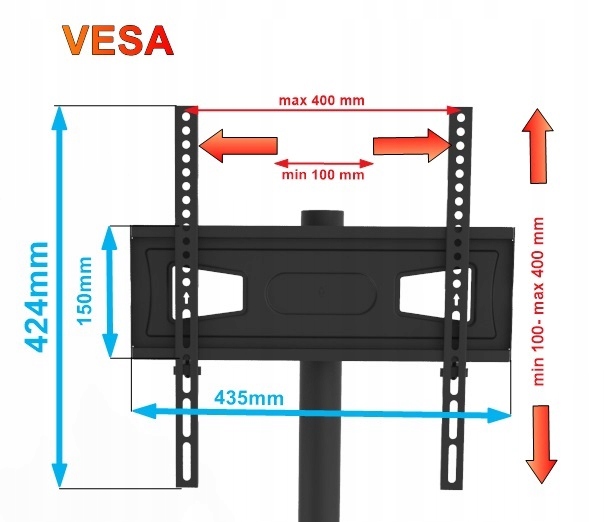- VESA: 100x100, 100x200, 200x100, 200x200 , 200x300, 200x400, 300x200, 300x300, 300x400, 400x200, 400x300, 400x400 мм і все між ними