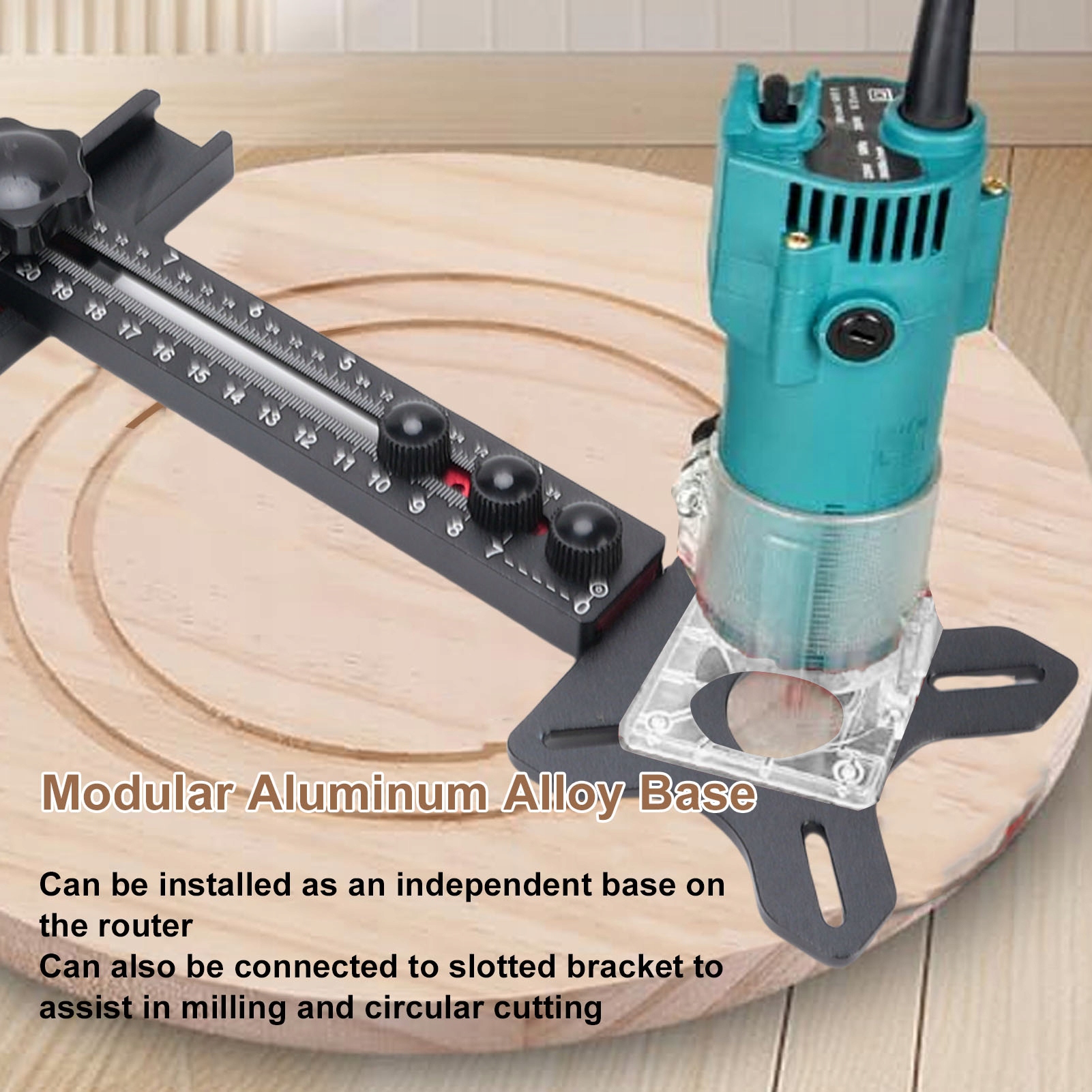 2. Знімна основа: модульна основа — це багатофункціональна частина, яку можна встановити як окрему основу на фрезер або підключити до кронштейна з прорізами, щоб допомогти у фрезеруванні та круговому різанні.