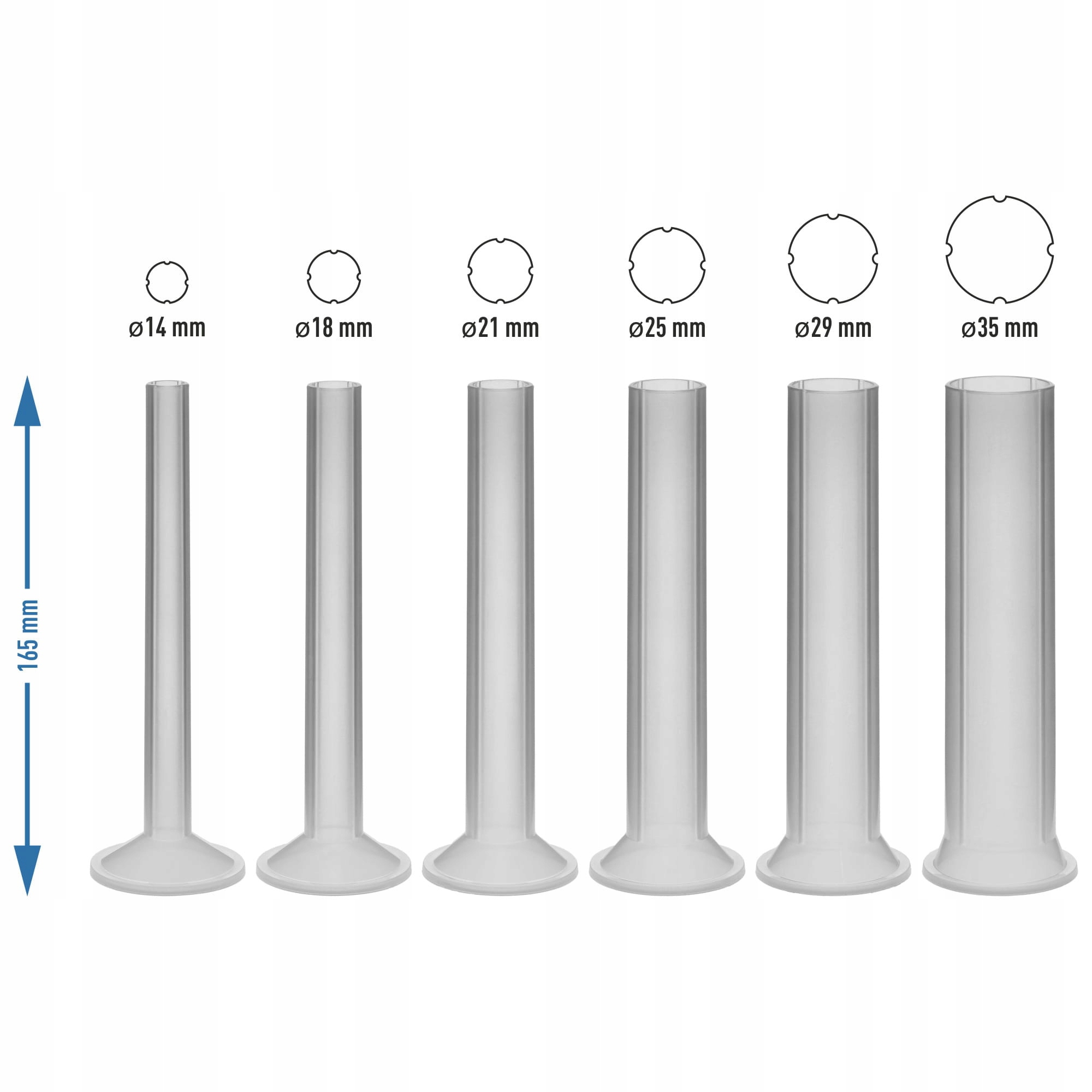 - 6 лійок довжиною 165 мм і різними діаметрами: 14, 18, 21, 25, 29, 35 мм