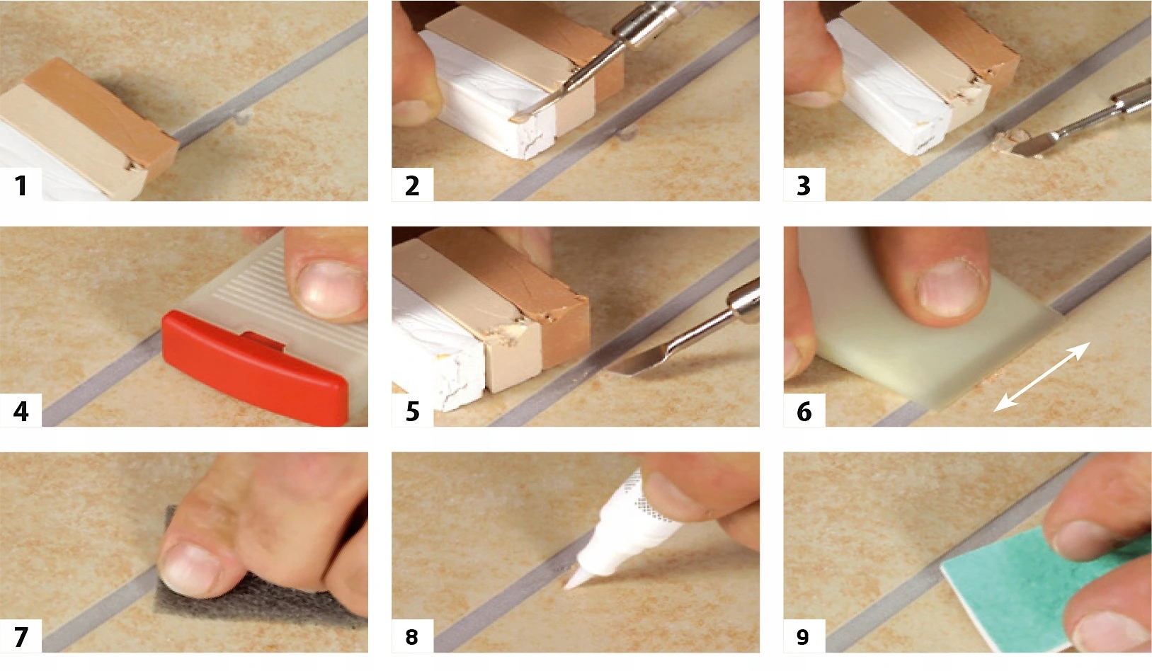 KERAMI-FILL — це дуже твердий наповнювач для ремонту пошкоджень на підлоговій та настінній плитці, кераміці, керамічних виробах, стільницях, ламінаті та незначних пошкоджень на кам’яних, конгломератних і бетонних поверхнях. Під ремонтвнутрішніх та зовнішніхприміщень. Потрібне використання лаку для захисту від ретуші. Для ремонту рекомендується використовувати шпатель і плавильне пристосування (є на інших аукціонах).