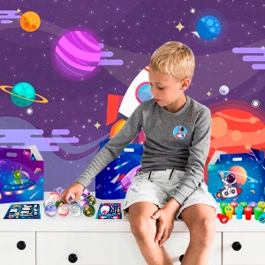 - Дизайн космічної тематики: вечірка планети використовує класичні космічні елементи як тему, з ракетами, астронавтами, космічними кораблями, планетами та іншими візерунками як декоративними візерунками, які будуть дуже популярні на космічних вечірках.