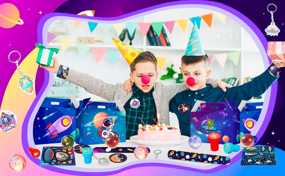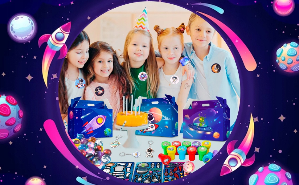 - Розкішний набір подарунків для космічної вечірки: наш набір подарунків для космонавтів включає 10 коробок пакетів із космічними подарунками, 10 значків космічної вечірки, 10 брелоків на тему космосу, 10 значків космічної вечірки, 10 значків космічної вечірки, наклейки на день народження, 10 космічних м’ячів, тощо. Космічні товари до дня народження.