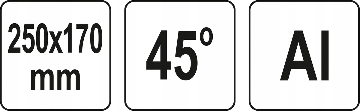 Довжина направляючої приблизно 250 мм, ширина приблизно 170 мм, кут шліфування 45 градусів.