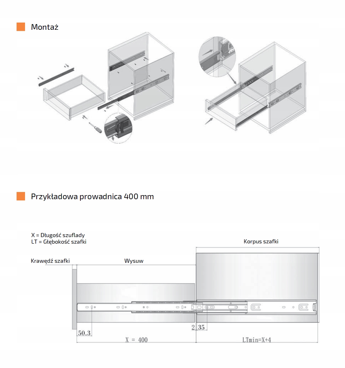Кульова направляюча з посиленою конструкцією, вантажопідйомність до 110 кг. Ця особливість разом із широким вибором ширини (до 1200 мм) робить його придатним для багатьох застосувань, у тому числі: для висувних ящиків під ліжками, для створення ніш під сходами, у шафах майстерні, типу RACK, в автобусах, кемперах або човнах .