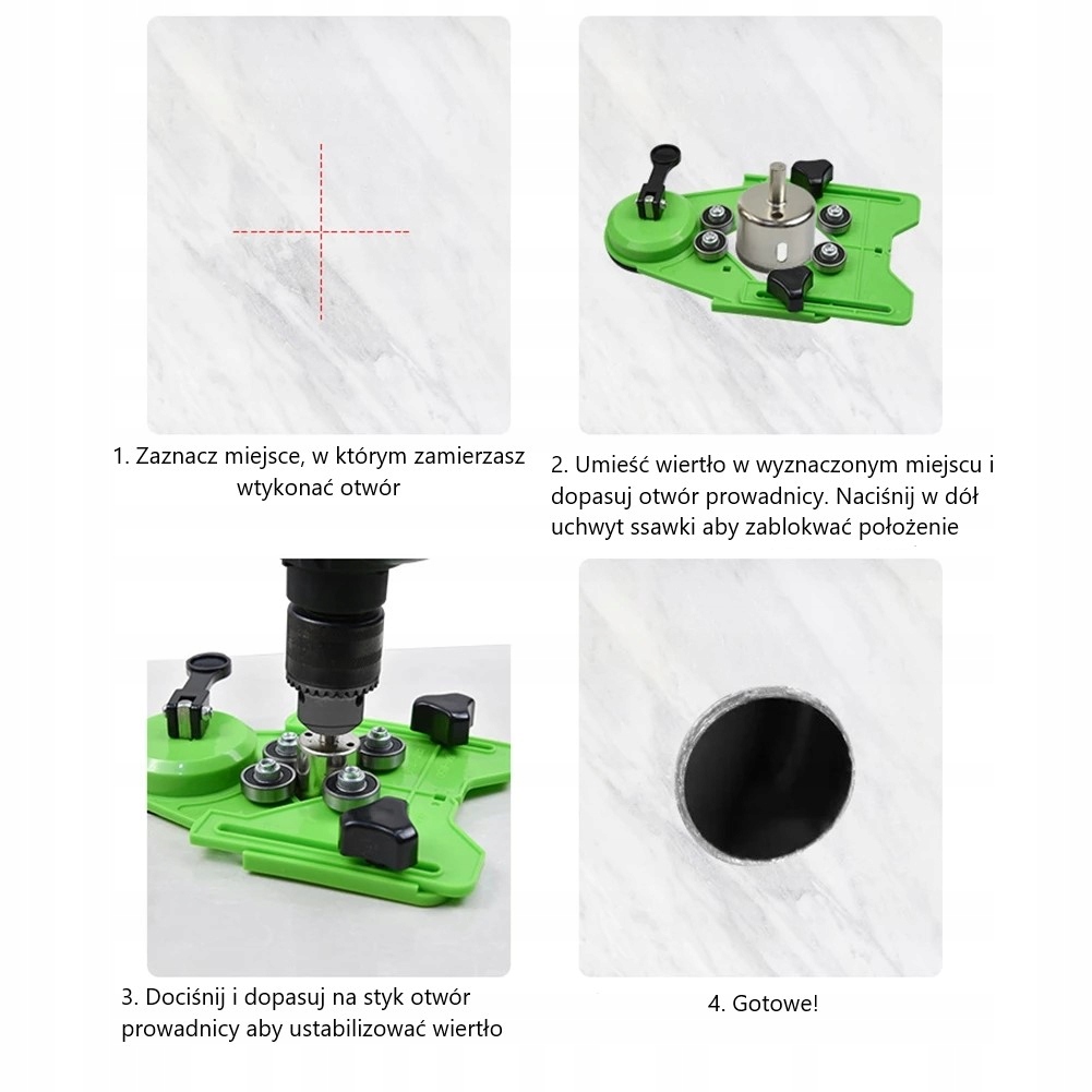 Посібник, що полегшує роблення отворів за допомогою діркових пилок, насадок і свердел у керамічній плитці, кераміки, плитки, скла, металу та інших матеріалів.