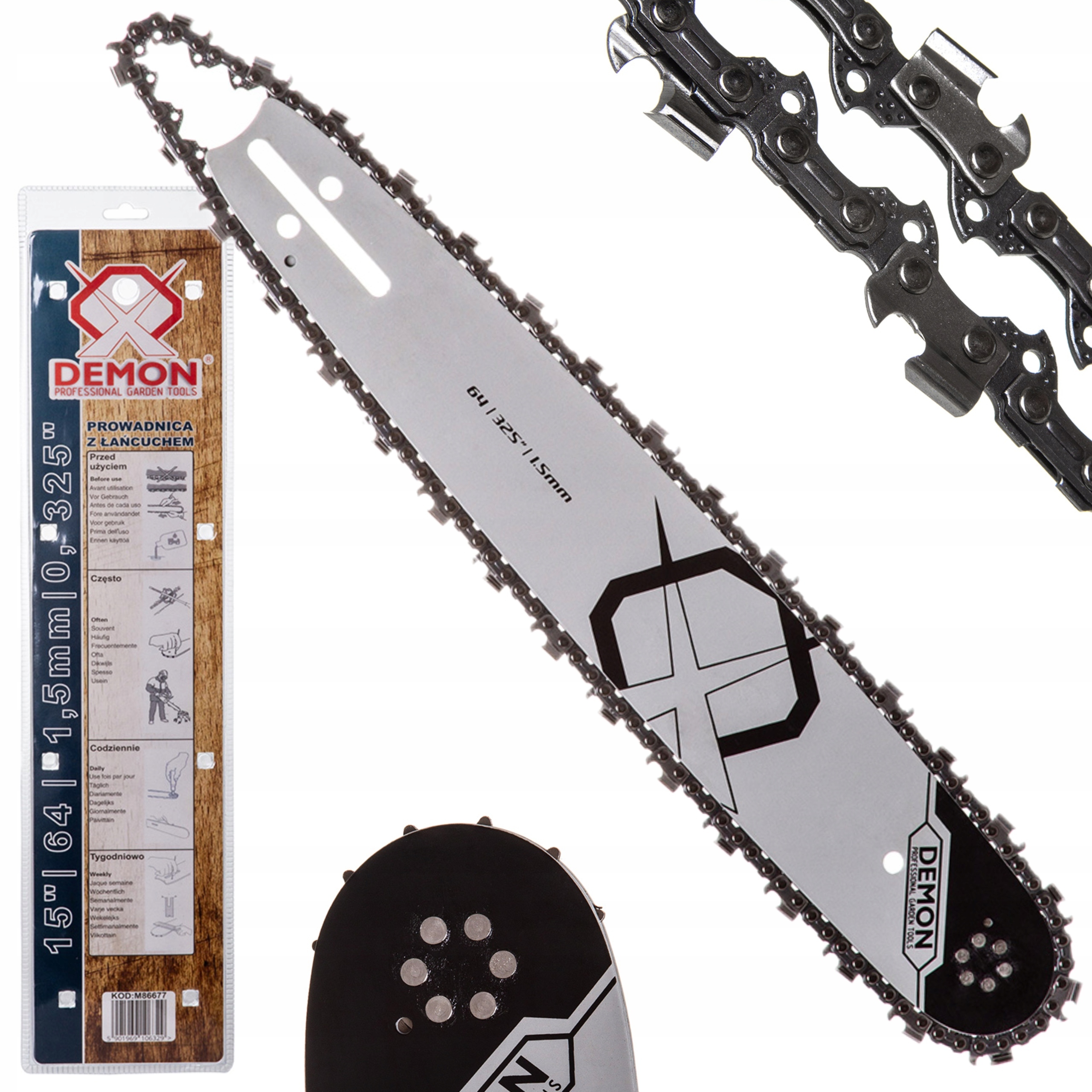 НАПРАВЛЯЮЧА З ЛАНЦЮГОМ DEMON ДЛЯ ПИЛИ 15" 64 1.5мм 0.325" DEMON M86677