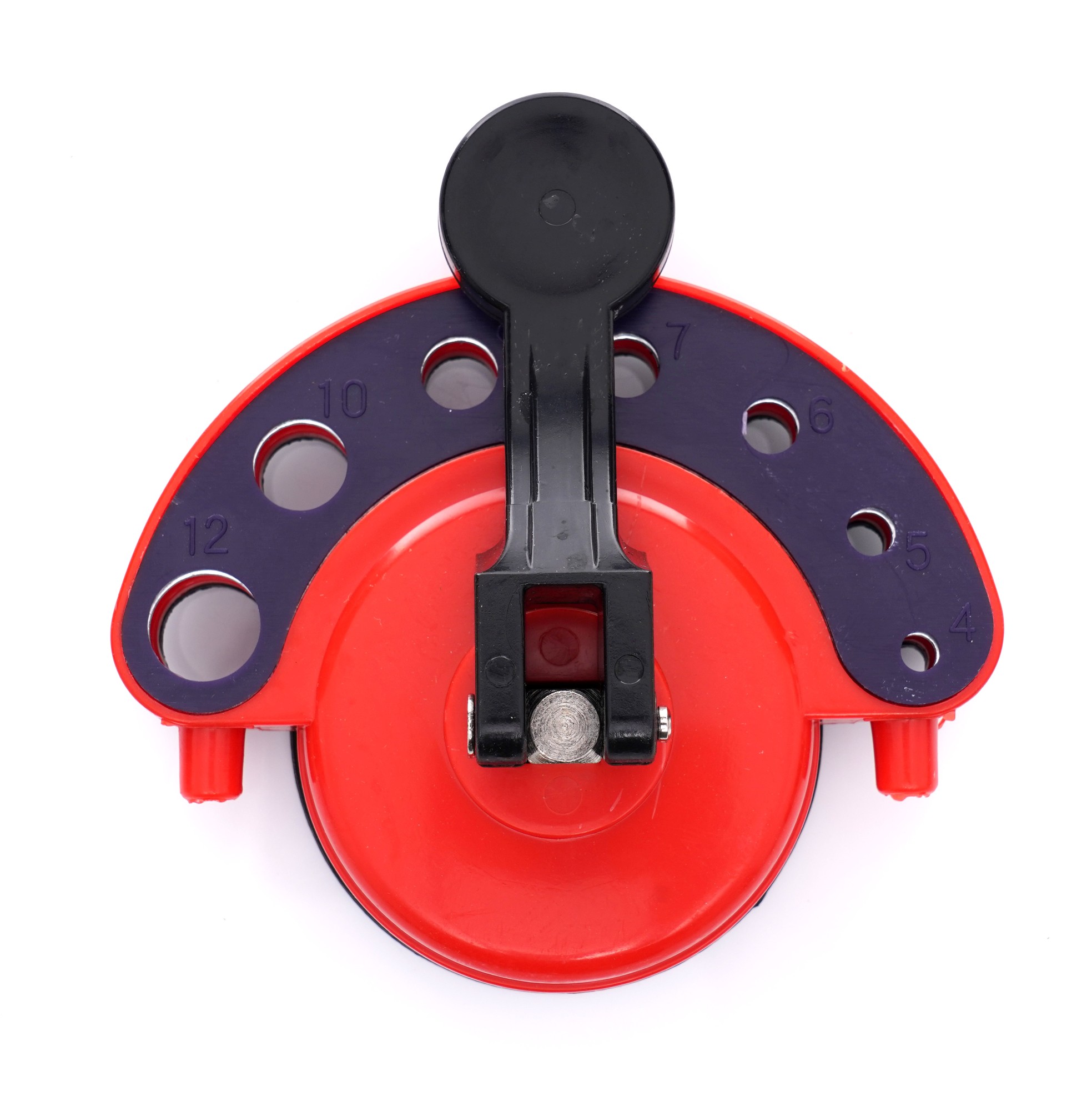 Направляюча з міцного ABS-пластику підтримує свердла розміром 4-12 мм. Має міцну присоску діаметром до 6 см і сім напрямних отворів діаметром: 4, 5, 6, 7, 8, 10, 12 мм.
