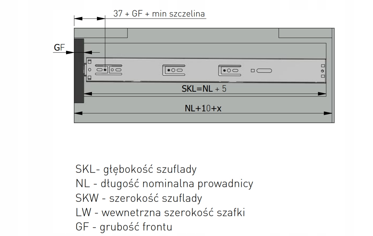 Направляючий L-550 натискання на відкриття + плавне закриття Versalite