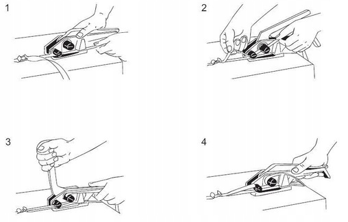 Натягувач для затягуванняполіпропіленових стрічок за допомогою дротяних або пластикових затискачів.