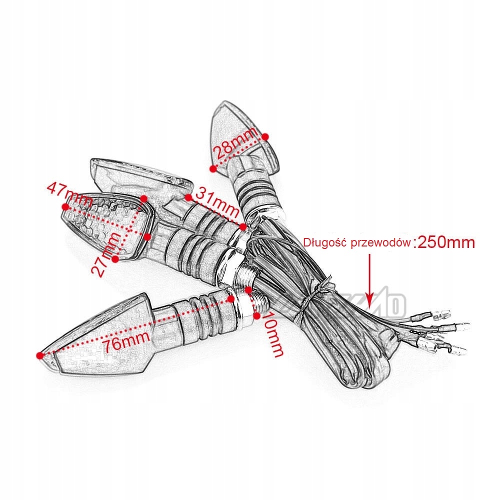 Покажчики повороту встановлюються на гвинт M10 з дротяними кінцями.