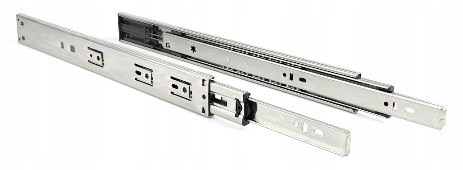 Стійкість - напрямні дуже міцні та витримують навантаження до 35 кг. Завдяки цьому шухляда стійка і не бояться, що вона перекинеться або пошкодиться, крім того, вони виготовлені з більш товстого листового металу, ніж напрямні конкурентів, що означає, що вони більш міцні та стійкі до пошкоджень. Завдяки цьому напрямні можна використовувати тривалий час без необхідності заміни.