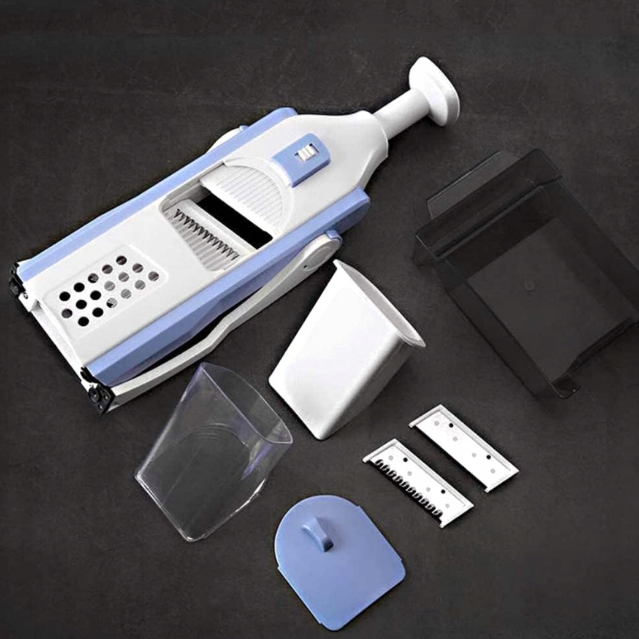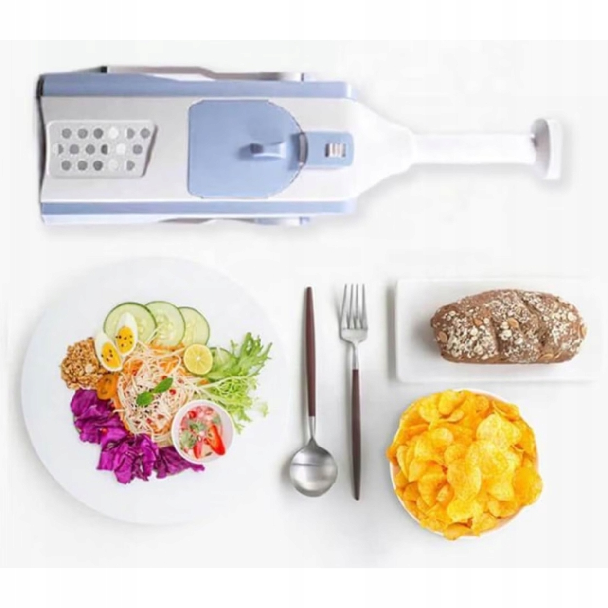 Завдяки змінним лезам і міцній конструкції вона дозволяє готувати салати, сирі салати, картоплю фрі або скибочки для варіння та запікання всього за кілька хвилин. Це практичний і універсальний пристрій, який полегшить щоденне приготування їжі.