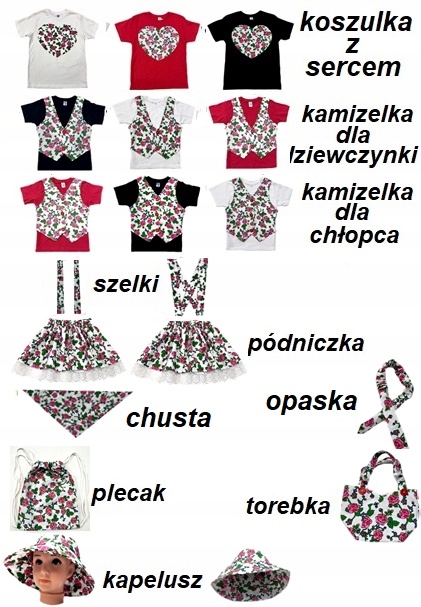 Ми пропонуємо народні та високогірні бавовняні спідниці з різноманітними аксесуарами, такими як підтяжки, шарфи, пов’язки, сумочки, капелюхи, футболки з аплікаціями, жилетки, рюкзаки, фартухи, все в тому ж візерунку, що й спідниця.