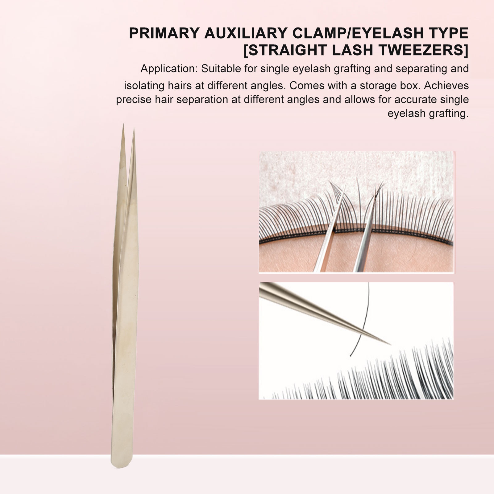 - Прімий пінцет для вій: пінцет підходить для одиночної звичайної трансплантації, може використовуватися для розділення волосків під різними кутами та може використовуватися як основний або вторинний пінцет. Їх зручно тримати в руках і працювати без проблем.