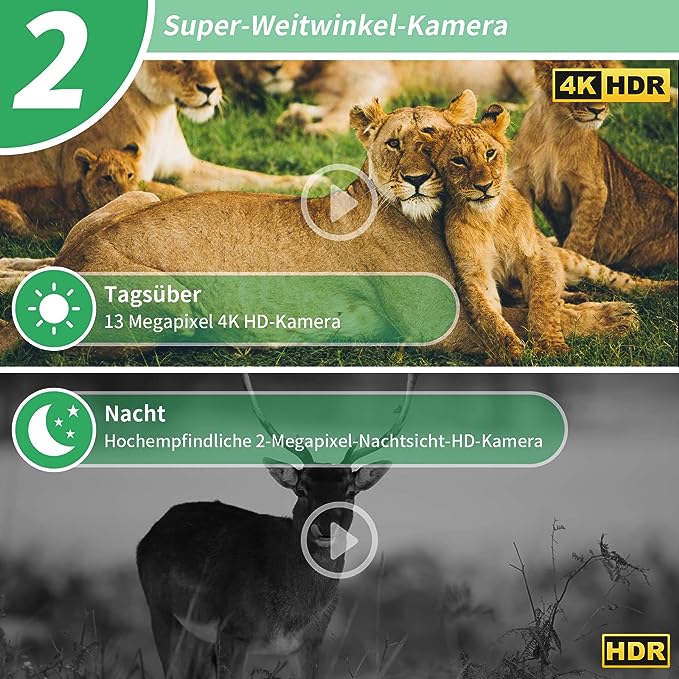 - можна використовувати в будь -яких умовах погоди та навколишнього середовища, тому він має ступінь захисту IP 66. Він здатний записувати високоякісні зображення і дня, і вночі. Незалежно від того, чи це птахи, їжаки, лисиці, борсуки чи олені, ця камера для фотографування дикої природи є необхідністю для любителів природи.
