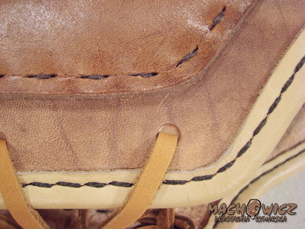 Наручі нові, з товстої чистої шкіри. Посилені нашивками з тієї ж шкіри, зшиті вручну. Вони ідеально підходять для боротьби. Все це оздоблено шкіряною обробкою, зшитою вручну з товстого вощеного лляного шпагату.
