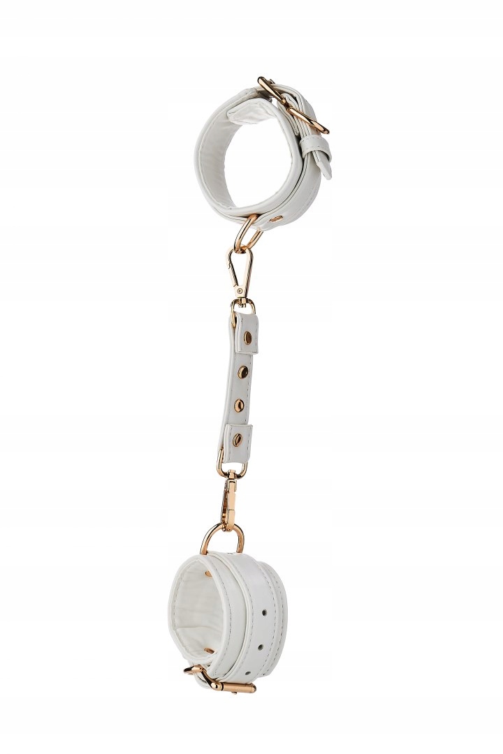 Чому одяг для БДСМ завжди має бути чорним? Ці наручники від бренду Blaze Elite виготовлені з білої штучної шкіри і такі стильні! Манжети на зап’ястя мають золоті металеві деталі без нікелю, які доповнюють стильний вигляд. Наручники повністю регулюються за допомогою пряжок, щоб підходити до будь-якого зап'ястка. Ланцюжок довжиною 10 см тримає манжети разом, і цей ланцюжок знімається з одного боку за допомогою мушкетонного гачка. Можна прикріпити більше ланцюгів, гаків для мотузок або додаткових тягарів. Стильні білі наручники Виготовлені зі штучної шкіриЗ металевими деталями золотого кольору, без нікелюРегульований розмірЗнімний ланцюжок 10 см