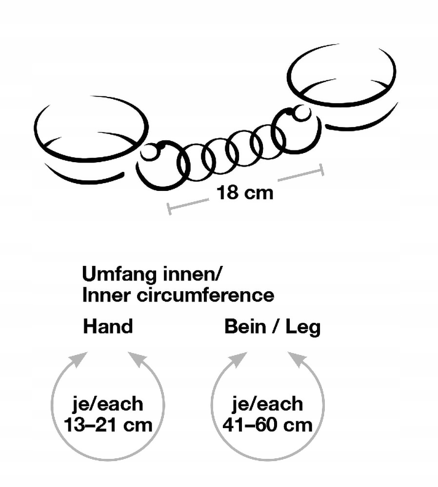наручники на зап’ястях - регульована окружність в діапазоні від 13 до 21 див.