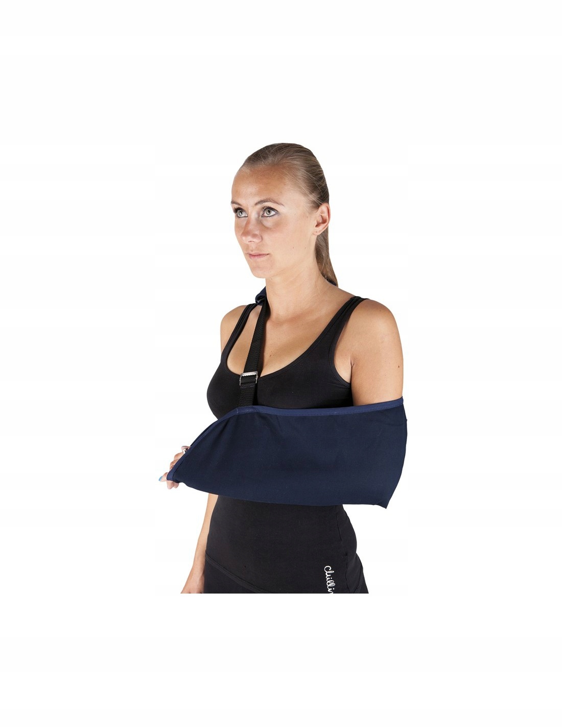 Ліктьово-долонний слінг, включаючи плечово-ліктьовий суглоб. Виготовлений зі 100% бавовни, має ремінь для перенесення з додатковим покриттям, що захищає шию від тиску та потертостей, застібається зручною пряжкою, що забезпечує легке регулювання довжини. Пояс проходить по діагоналі спини, забезпечуючи рівномірний розподіл навантаження.