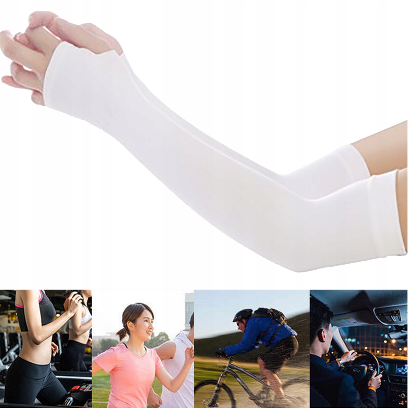 Нарукавники із захистом від ультрафіолетового випромінювання для чоловіків, жінок, охолоджуючі нарукавники Ice Silk з отвором для великого пальця для літніх видів спорту на свіжому повітрі, садівництва, їзди на велосипеді, білі
