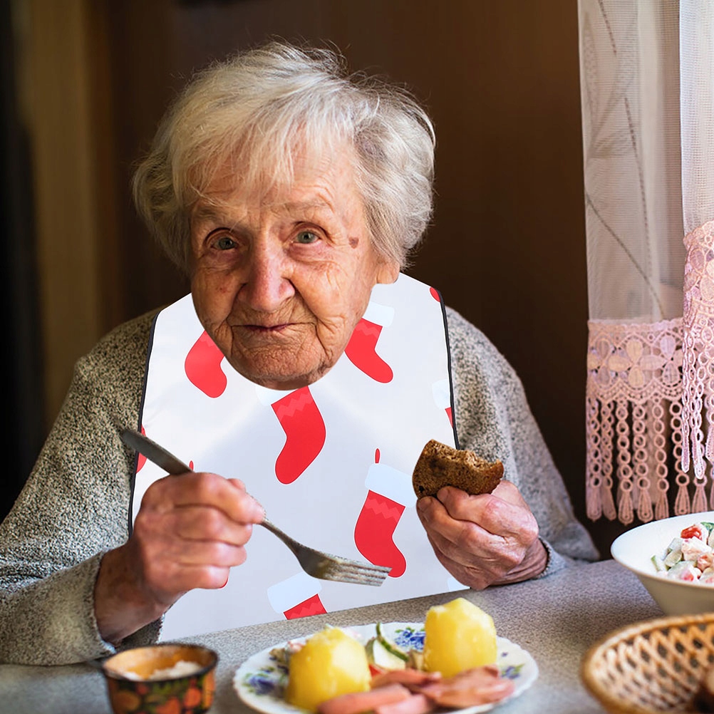 ✅Ви все ще турбуєтеся про те, що одяг ваших старших забрудниться під час їжі? Це практичний нагрудник для людей похилого віку, високоякісні матеріали, приємні до шкіри та еластичні. У цьому нагруднику одяг людей похилого віку завжди буде чистим і зручним у використанні. З різдвяним тематичним візерунком, він також буде для ваших батьків, родичів чи старших членів родини на Різдво.