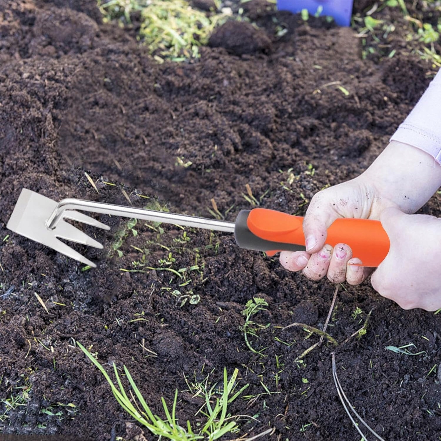 Більше ніяких бур'янів Цей інструмент для видалення бур'янів має загострену конструкцію з трьома зубцями, що дозволяє легко викопувати та видаляти бур'яни у важкодоступних місцях. Завдяки прямокутній головці лопати ви можете висмикувати бур'яни, не зачіпаючи навколишні рослини або ґрунт. Міцна нержавіюча сталь Цей засіб для видалення бур’янів оснащено зубчастою головкою з нержавіючої сталі, яка може легко вирвати бур’яни з корінням. Зубчаста головка надійно прикріплена до рукоятки, яка може бути виготовлена з твердої деревини ПВХ або нержавіючої сталі для вашого комфорту. Простота у використанні. Втиснувши 3 зубці в землю навколо кореня бур’янів і міцно потягнувши їх догори, ви зможете видалити всі бур’яни, не залишаючи залишків. Цей інструмент також оснащений наконечником лопати під прямим кутом, який можна використовувати для вилучення з землі коріння або каміння, які важко видалити. Цей універсальний садовий пристрій підходить не тільки для видалення дрібних бур’янів, але й для пересадки овочевих культур і перекопування. Це допомагає розпушити ґрунт і видалити непотрібні рослини з поля, заощаджуючи час і зусилля під час роботи в саду. Цей ефективний і практичний засіб для видалення бур’янів може контролювати різні види бур’янів у різних умовах ґрунту. Має подовжену ручку і відповідний кут зубів, завдяки чому може більш ефективно видаляти бур'яни. Ергономічний дизайн дозволяє зручно тримати в руках. Маленький отвір на кінці ручки та мотузка, прикріплена до неї, дозволяють легко зберігати.
