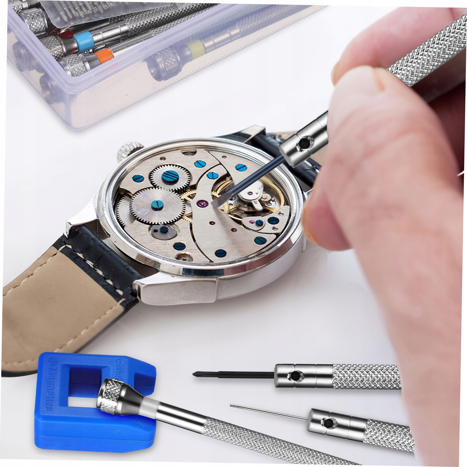 NARZĘDZIE DO NAPRAWY ZEGARKÓW + 16 UCHWYTÓW RĘCZNE DOMOWE