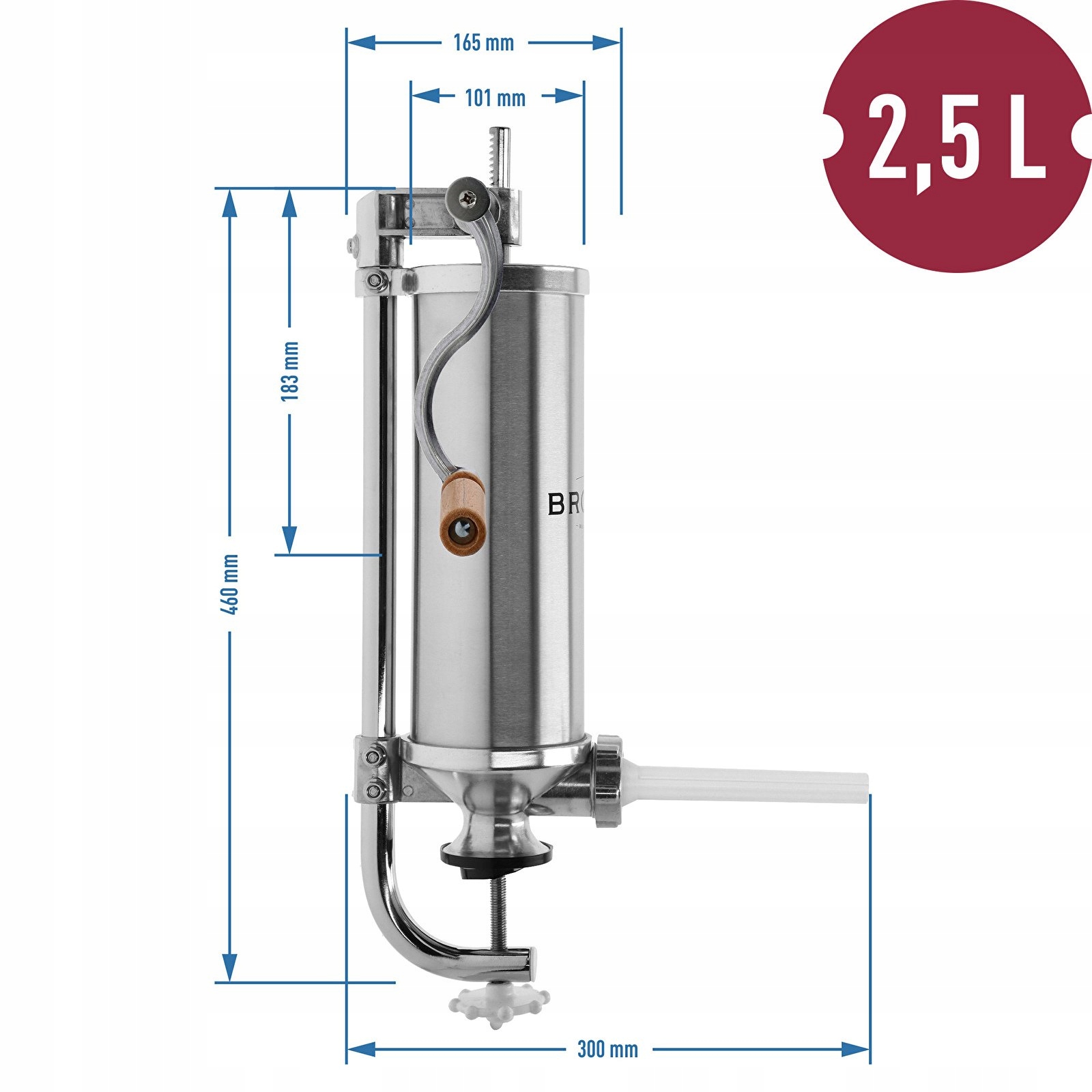 Високоякісна нержавіюча сталь, з якої виготовлений циліндр фаршу, а також продумана конструкція і спеціально розроблений стійкий до згинання поршень робить пристрій служить вам роками!