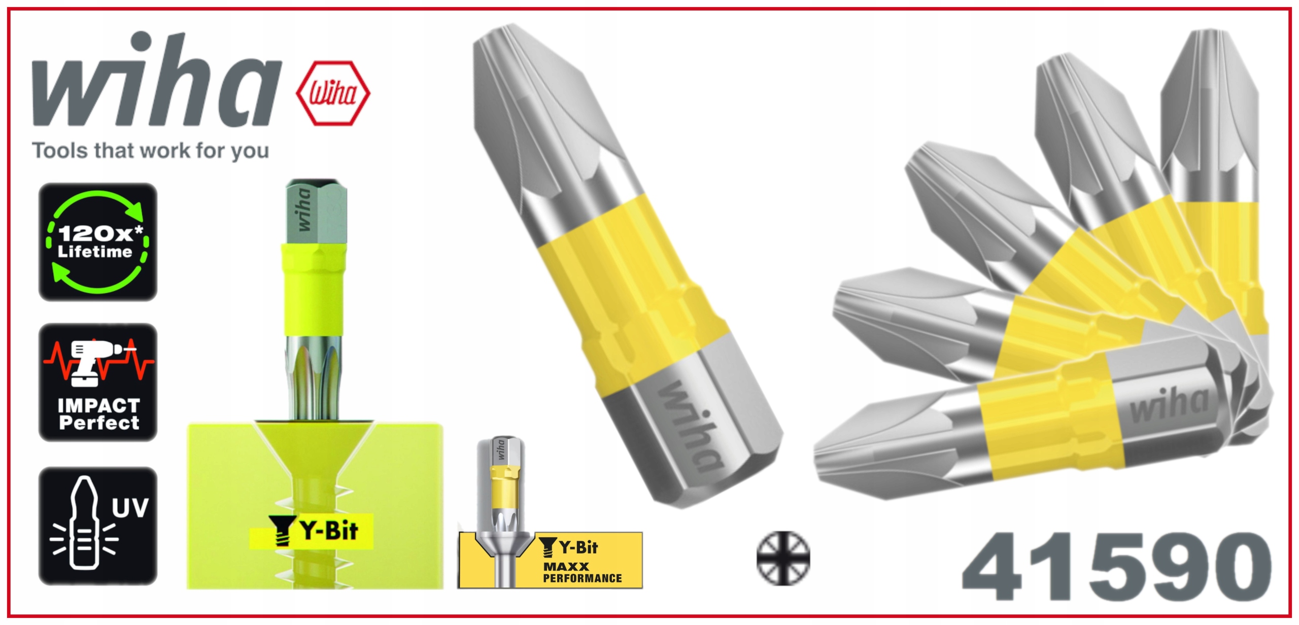 Напевно досі, купуючи насадки, ви задавалися питанням для чого вони використовуються для певного типу бітів. Wiha кладе цьому край і полегшує процес відбору. Завдяки революційній концепції насадки Wiha тепер важлива лише форма головки гвинта, яка відіграє ключову роль у виборі насадки. Наприклад, біта "Y" ідеальна для гвинтових з'єднань, виконаних за допомогою Y-подібних гвинтів з кутом між різьбою та головкою, відмінним від 90°. Запатентована розширена торсійна зона робить біту також придатною для ударних викруток, забезпечуючи в 120 разів довший термін служби порівняно зі стандартними бітами Wiha. Крім того, завдяки люмінесцентному лаковому покриттю ви зможете швидко і легко знайти кольорові шматочки навіть у темряві за допомогою УФ-лампи. Це зменшує кількість втрачених бітів і, таким чином, заощаджує непотрібні витрати.