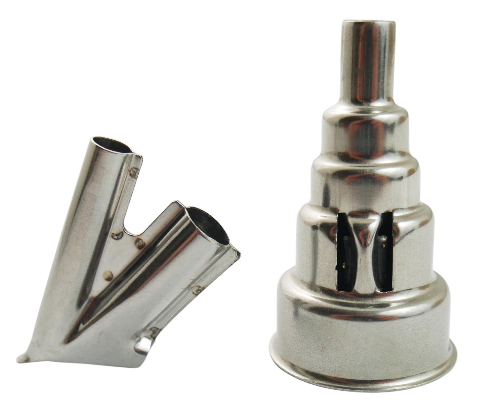 - ⭐ Набір складається з двох наконечників: насадка АЛЕ та насадка ПІРАМІДА, які використовуються для різних пристроїв та методів ремонту пластику за допомогою гарячого повітря.